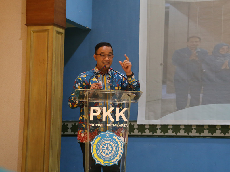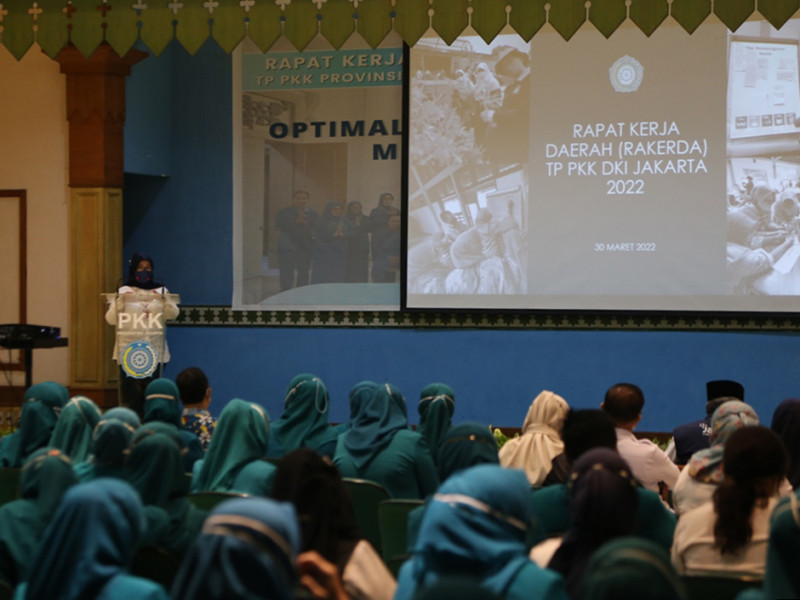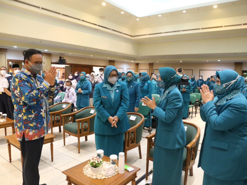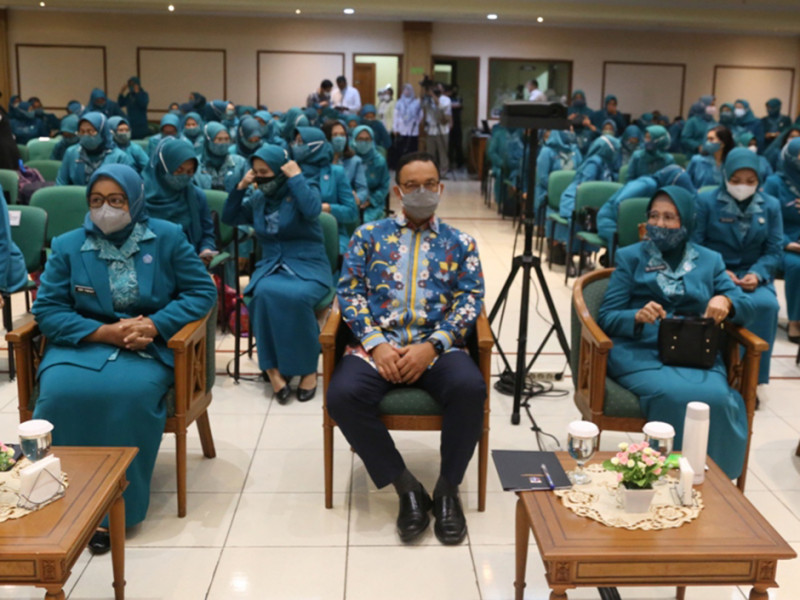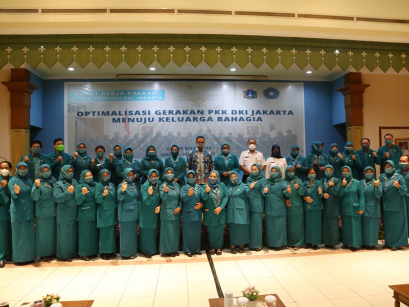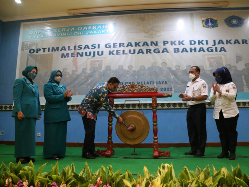 Rapat Kerja Daerah (Rakerda) TP PKK DKI tahun 2022 resmi dibuka Gubernur DKI Jakarta, Anies Baswedan di Gedung PKK Melati Jaya, Jalan Kebagusan Raya, Pasar Minggu, Jakarta Selatan, Rabu (30/3). Rakerda bertema \'Optimalisasi Gerakan PKK DKI Jakarta Menuju Keluarga Bahagia\' tersebut turut dihadiri Kepala Dinas Pemberdayaan, Perlindungan Anak, dan Pengendalian Penduduk (PPAPP) DKI Jakarta, lima wali kota, dan Bupati Kepulauan Seribu. (Foto: Reza Hapiz/beritajakarta.id)