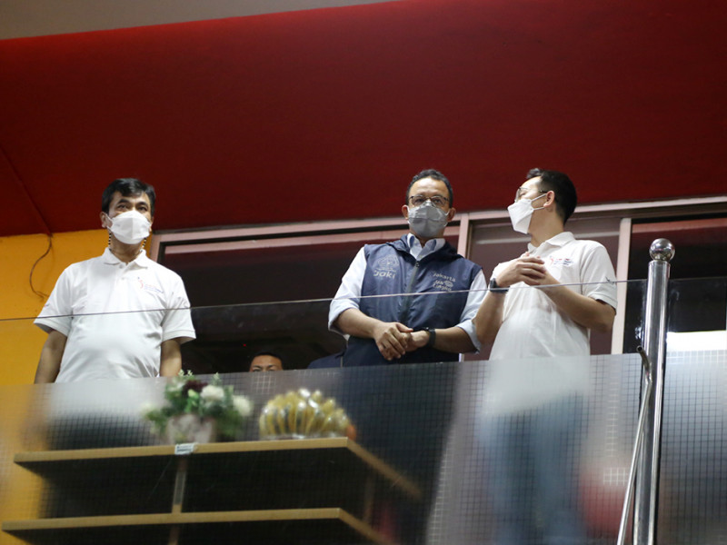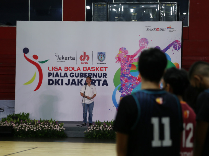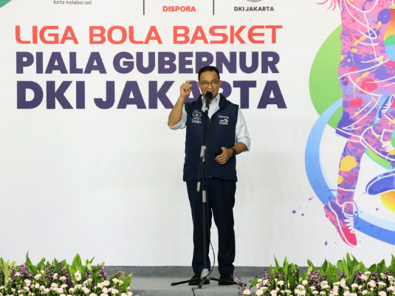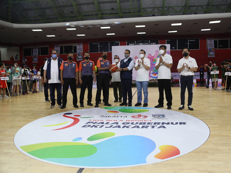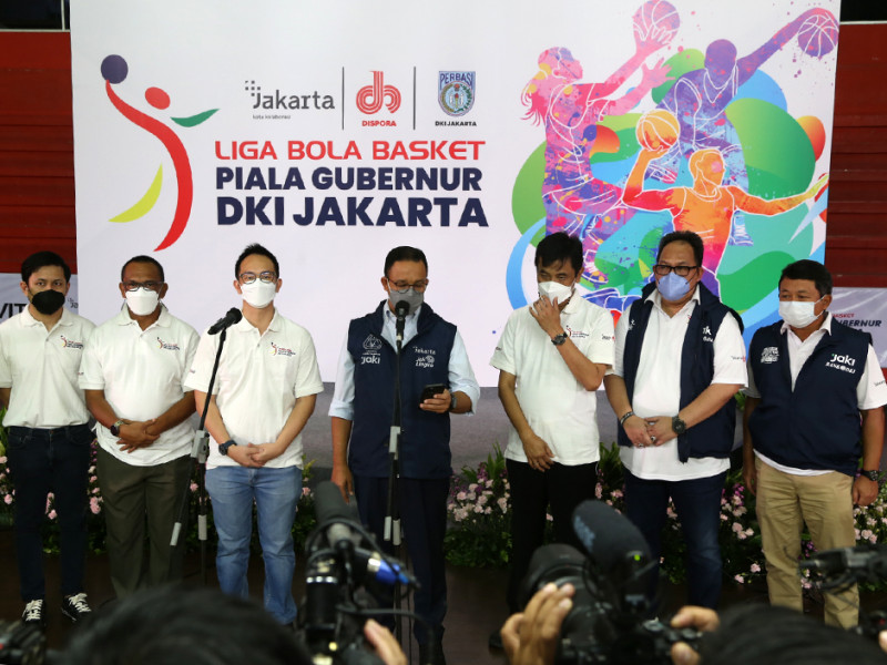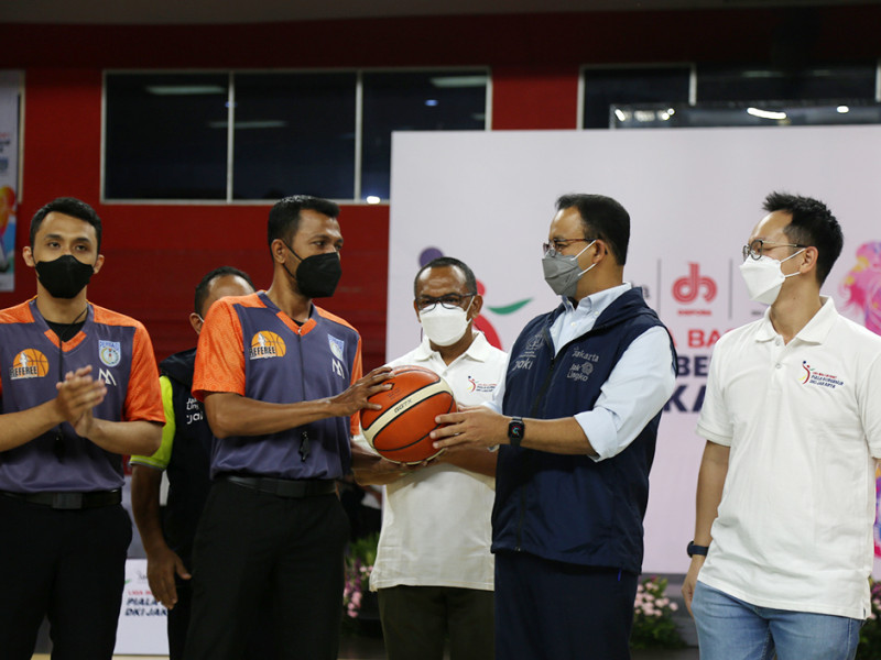 Gubernur Provinsi DKI Jakarta, Anies Baswedan membuka Liga Basket Piala Gubernur 2022 yang diselenggarakan oleh Dinas Pemuda dan Olahraga Provinsi DKI Jakarta berkolaborasi dengan Persatuan Bola Basket Seluruh Indonesia (Perbasi) DKI Jakarta, di GOR Soemantri Brodjonegoro, Setiabudi, Jakarta Selatan, Kamis (31/3). Tujuan diadakan kejuaraan ini untuk mencari bibit-bibit atlet basket yang unggul dari klub-klub amatir yang berada di DKI Jakarta. (Foto: Reza Hapiz/beritajakarta.id)
