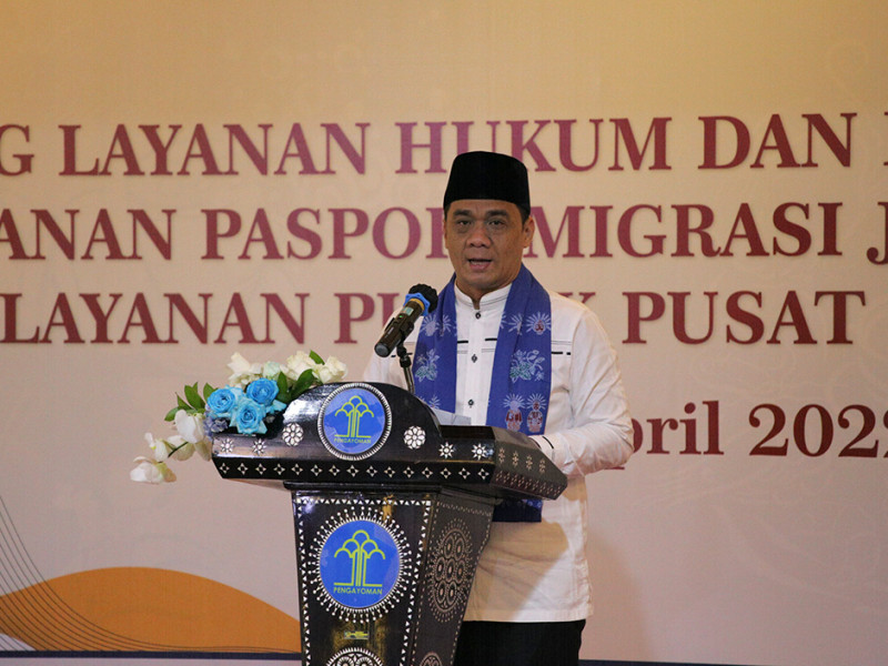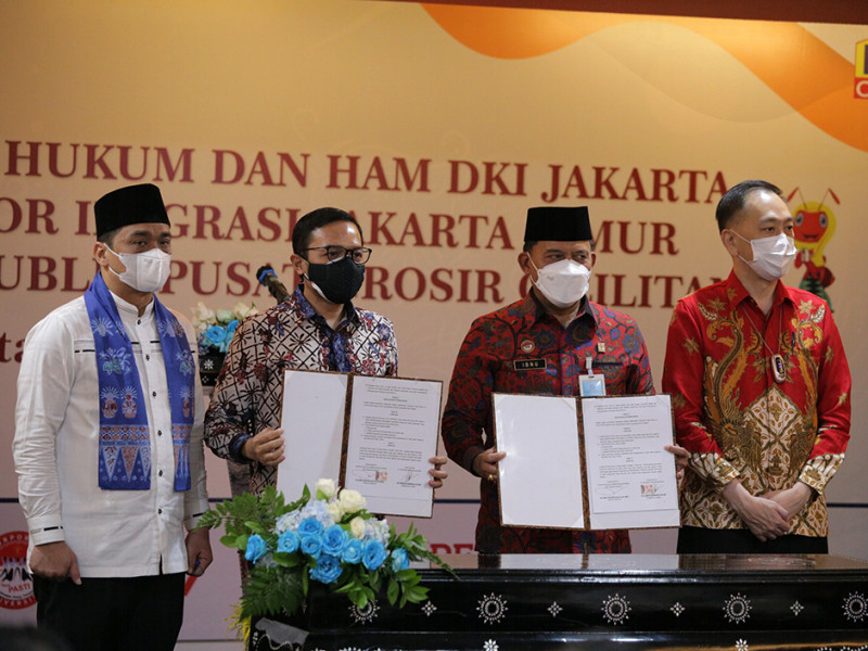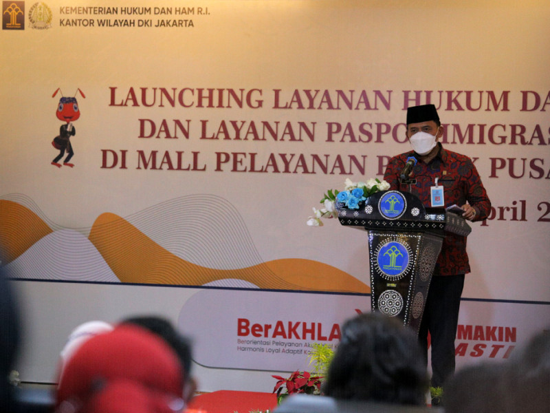 Wakil Gubernur Provinsi DKI Jakarta, Ahmad Riza Patria turut meresmikan secara simbolis Gerai Pelayanan Publik (Gerai Pelayanan Hukum-HAM dan Imigrasi Terpadu) Kantor Wilayah Kemenkumham Provinsi DKI Jakarta dan Kanim Kelas 1 TPI Jakarta Timur, di Pusat Grosir Cililitan (PGC), Lantai 2, Jakarta Timur, Jumat (1/4). Dalam sambutannya, Ariza berharap kehadiran gerai pelayanan terpadu tersebut dapat memperluas dan meningkatkan pelayanan secara profesional di bidang hukum, HAM dan imigrasi bagi masyarakat Jakarta. (Foto: Mochamad Tresna Suheryanto/beritajakarta.id)