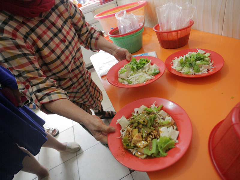 Asinan termasuk kudapan yang digemari banyak orang, terlebih saat bulan Ramadan. Sayuran yang diguyur kuah kental berwarna cokelat kemerahan tersebut menghasilkan cita rasa yang unik, yakni segar dan pedas dengan sedikit sensasi asam kecut. Jika ingin mencari asinan yang rasanya bikin ketagihan, mampirlah ke Jalan Taman Kamboja No 10, Rawamangun, Pulogadung, Jakarta Timur. Pasalnya, di lokasi tersebut ada sebuah warung asinan legendaris milik (Alm) H Mansyur yang rasanya jempolan. Dirintis pada tahun 1970 oleh H Mansyur, asinan awalnya dijajakan secara keliling dari kampung ke kampung di sekitar kawasan Taman Kamboja dengan cara dipikul. Namun pada 1980, H Mansyur jatuh sakit dan usahanya dilanjutkan di rumah. Lambat laun usahanya dikenal masyarakat dan berkembang hingga saat ini. Terdapat dua menu andalan di warung ini, yakni asinan sayuran dan asinan buah yang dijamin bikin melek. Tertarik mencobanya? (Foto: Mochamad Tresna Suheryanto/beritajakarta.id)