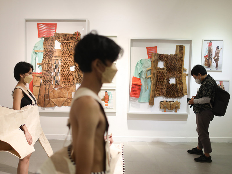 Sejumlah pengunjung mengamati karya seni yang ditampilkan dalam pameran bertajuk \'Indonesian Women Artist #3: Infusions Into Contemporary Art\' di Galeri Nasional Indonesia, Gambir, Jakarta Pusat, Selasa (5/4). Pameran tersebut menampilkan 32 karya seni dari 10 perupa perempuan profesional yang berusia di atas 50 tahun. Pameran berlangsung mulai 30 Maret hingga 24 April 2022. (Foto: Nugroho Sejati/beritajakarta.id)