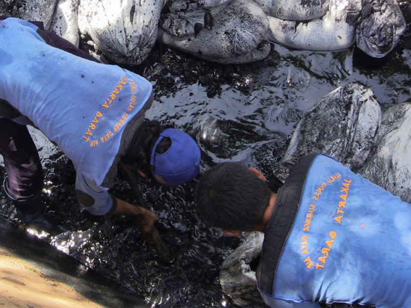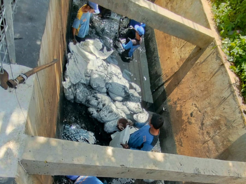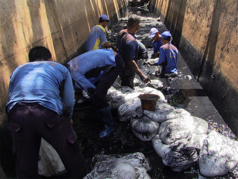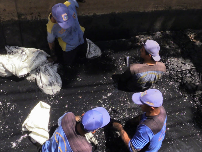 Pasukan biru Kecamatan Kembangan melakukan pengurasan Saluran Penghubung (Phb) Meruya Indah di Jalan Meruya Selatan, Kembangan, Jakarta Selatan, Selasa (5/4). Pengurasan saluran sepanjang 100 meter mengerahkan 13 personel Satuan Pelaksana Sumber Daya Air (Satpel SDA) Kecamatan Kembangan. (Foto: Reza Hapiz/beritajakarta.id)