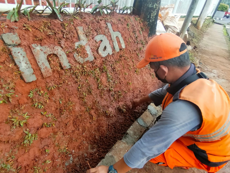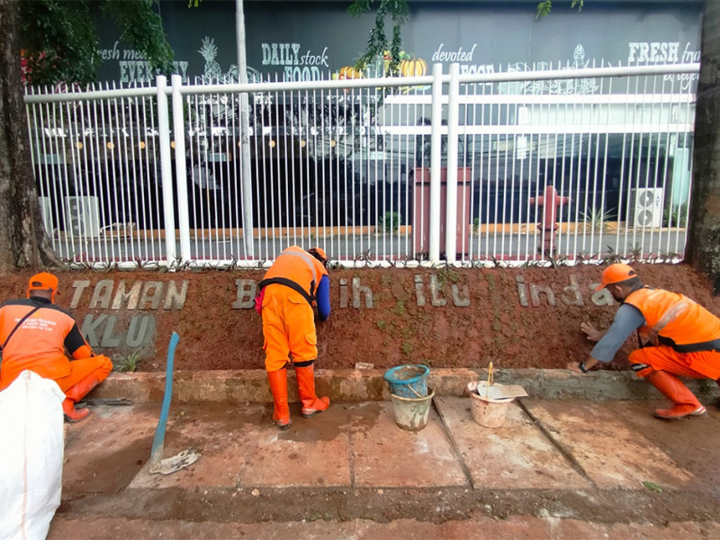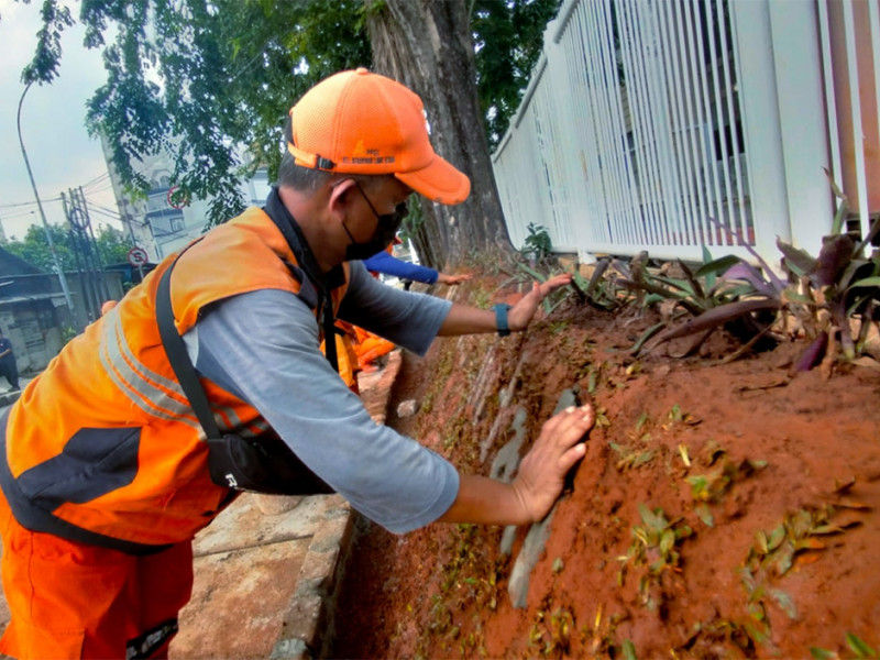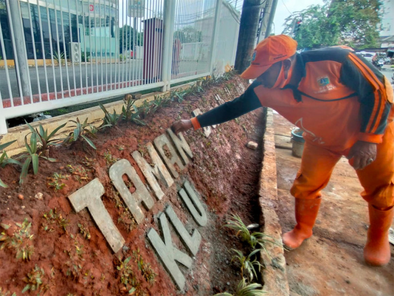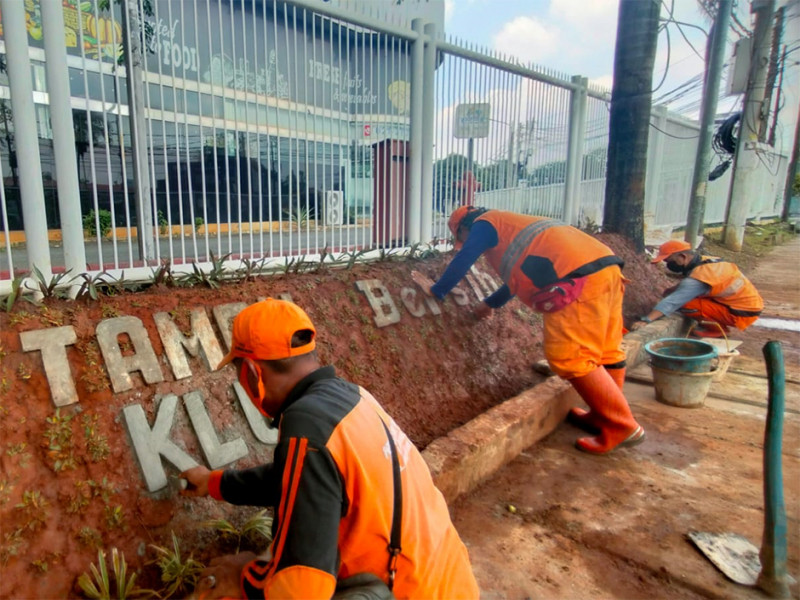 Petugas Penanganan Prasarana dan Sarana Umum (PPSU) Kelurahan Kebayoran Lama Utara membuat Taman Kolaborasi di Jalan Kramat II, Kebayoran Lama, Jakarta Selatan, Rabu (6/4). Pembuatan taman sepanjang enam meter dan lebar tinggi satu meter ini sebagai ikon Kelurahan Kebayoran Lama Utara. (Foto: Reza Hapiz/beritajakarta.id)