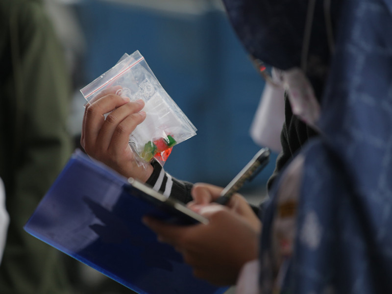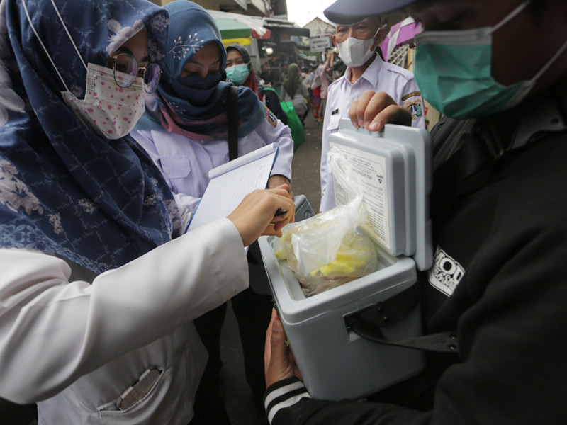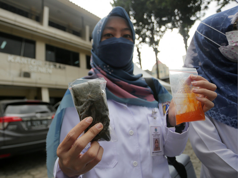 Guna memastikan takjil yang dijual bebas dari zat dan bahan berbahaya, Puskesmas Kecamatan Senen melakukan pemeriksaan kandungan yang terdapat dalam makanan takjil di kawasan Terminal Senen, Jakarta Pusat, Rabu (6/4). Dari 11 sampel makanan dan minuman dari penjual yang diuji laboratorium, petugas tidak menemukan kandungan berbahaya di dalamnya alias layak serta aman untuk dikonsumsi masyarakat. (Foto: Mochamad Tresna Suheryanto/beritajakarta.id)