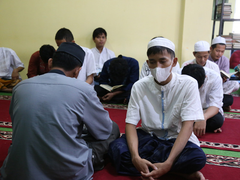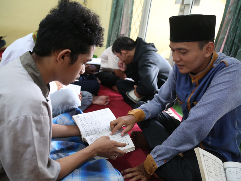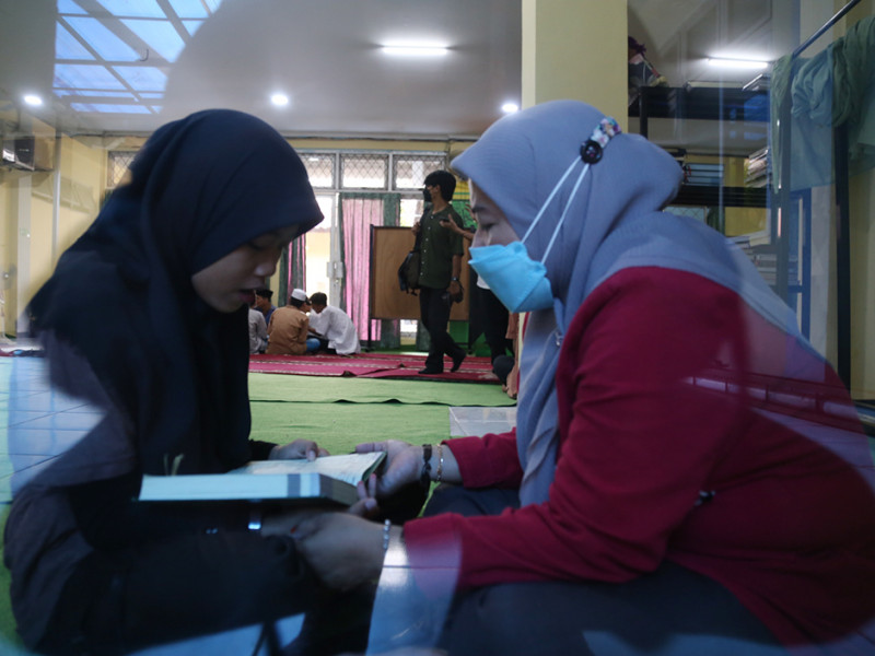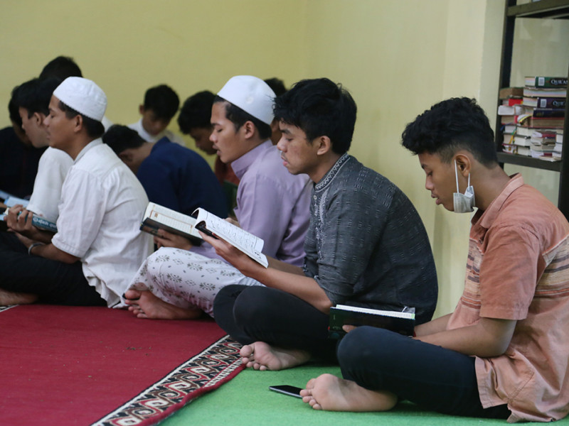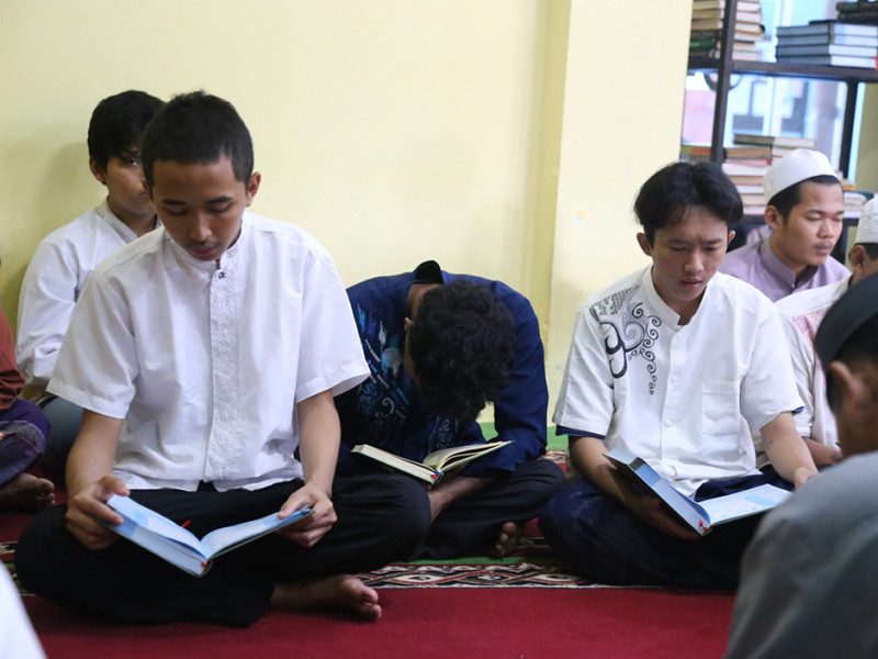 Panti Sosial Bina Remaja (PSBR) Taruna Jaya 1 bekerja sama dengan Baznas Bazis DKI mengadakan kegiatan mengaji di Jalan Tebet Barat Raya No 100, Tebet, Jakarta Selatan, Jumat (8/4). Adapun kegiatan pengajian tersebut diisi dengan membaca Iqro, tadarus, dan menghafal Ayat Suci Al-Qur\'an. (Foto: Reza Hapiz/beritajakarta.id)