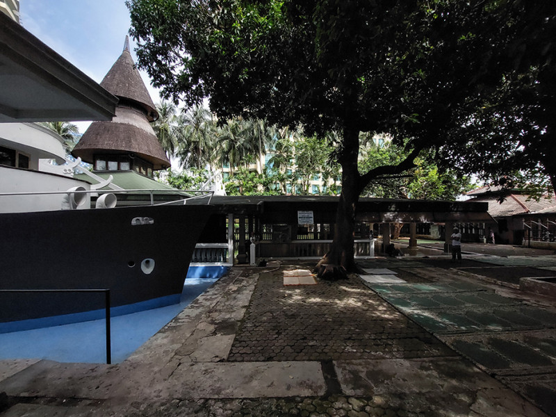 Ada satu masjid berbentuk unik di salah satu sudut Ibu Kota, yaitu Masjid Agung Al Munada Darussalam Baiturrahman yang terletak di Jalan Menteng Pulo No 23, RT 03/05, Kelurahan Menteng Dalam, Kecamatan Tebet, Jakarta Selatan. Masjid ini lebih dikenal dengan sebutan Masjid Perahu karena bentuk tempat wudunya yang menyerupai perahu. Bentuk perahu bermula dari kisah Nabi Nuh AS yang menginspirasi KH Abdurrahman Massud untuk membangun sebuah masjid dengan bentuk yang unik. Berdasarkan keterangan pengurus masjid, pembangunan Masjid Perahu dimulai pada bulan Januari 1962. (Foto: Nugroho Sejati/beritajakarta.id)
