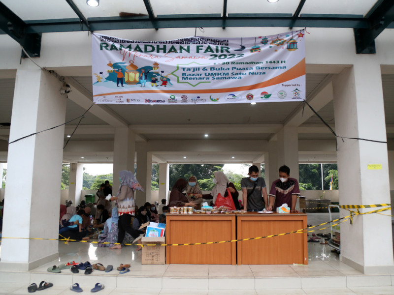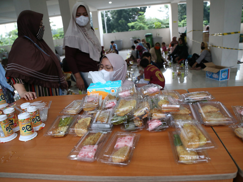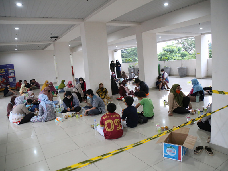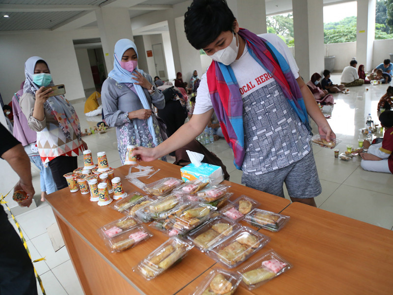 Warga Menara Samawa membagikan takjil gratis dan buka puasa bersama di Jalan Haji Naman No 54, Pondok Kelapa, Duren Sawit, Jakarta Timur, Minggu (10/4). Ini merupakan program Dewan Kemakmuran Masjid (DKM) Menara Samawa yang dilakukan rutin selama Bulan Suci Ramadan. Adapun takjil gratis ini diperuntukkan bagi seluruh keluarga besar Menara Samawa. (Foto: Mochamad Tresna Suheryanto/beritajakarta.id)