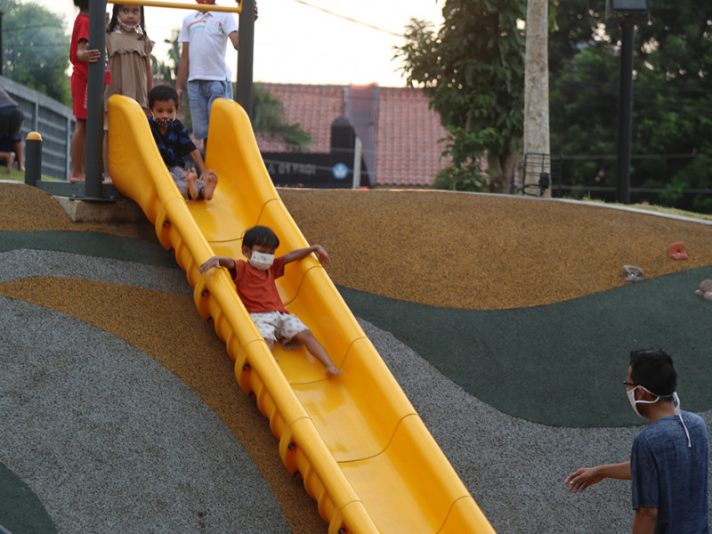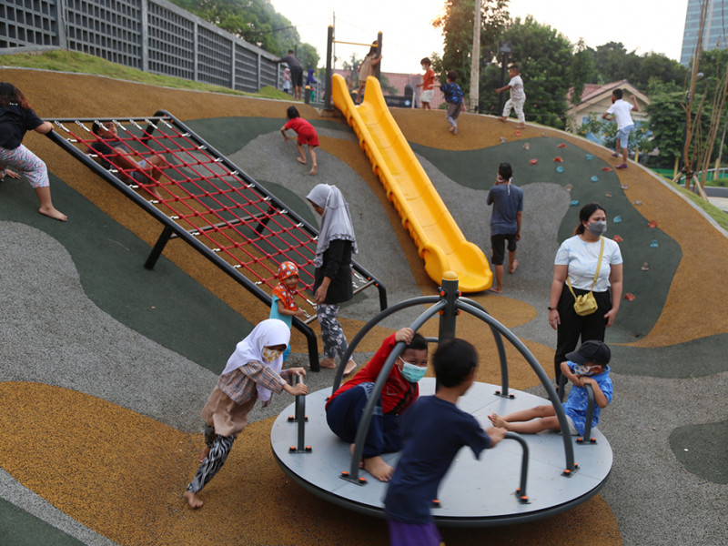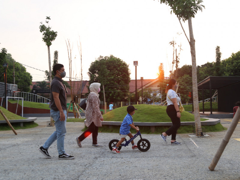 Keberadaan ruang terbuka hijau (RTH) makin dirasakan manfaatnya oleh masyarakat Ibu Kota terlebih saat Bulan Suci Ramadan. Taman Maju Bersama (TMB) Sambas Asri di Jalan Sungai Sambas II, RT 02/05, Kelurahan Kramat Pela, Kecamatan Kebayoran Baru, Jakarta Selatan, Senin (11/4) menjadi lokasi favorit warga untuk bercengkerama sambil menunggu datangnya waktu berbuka puasa. (Foto: Reza Hapiz/beritajakarta.id)