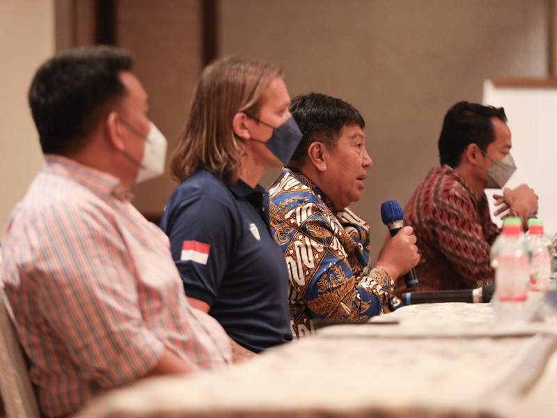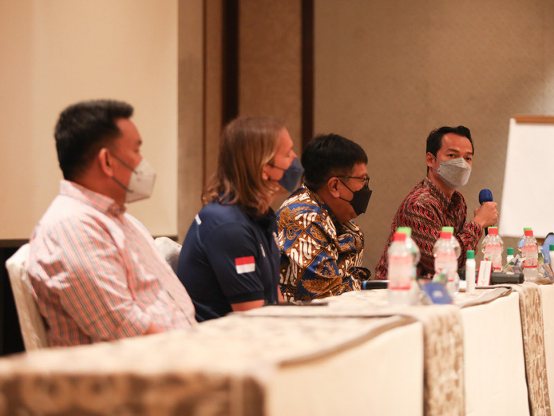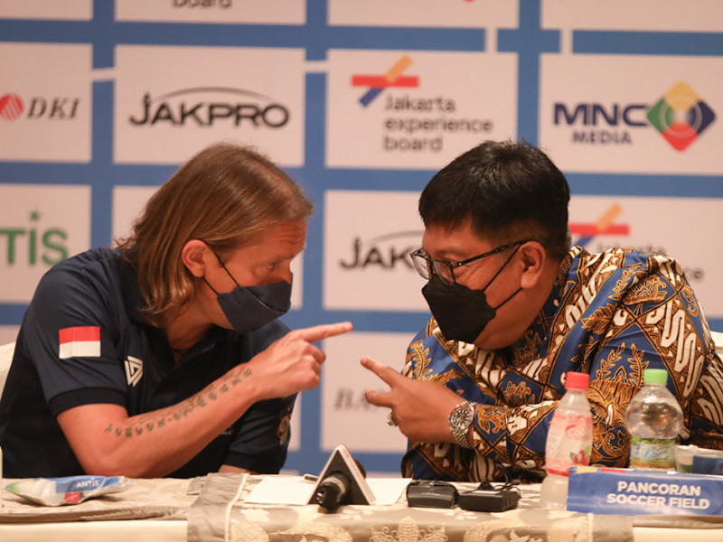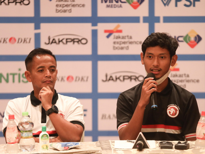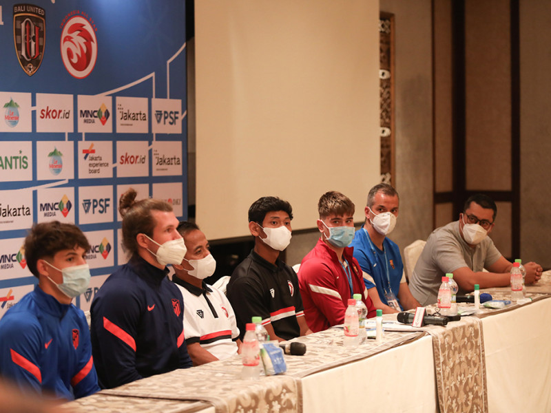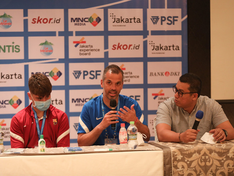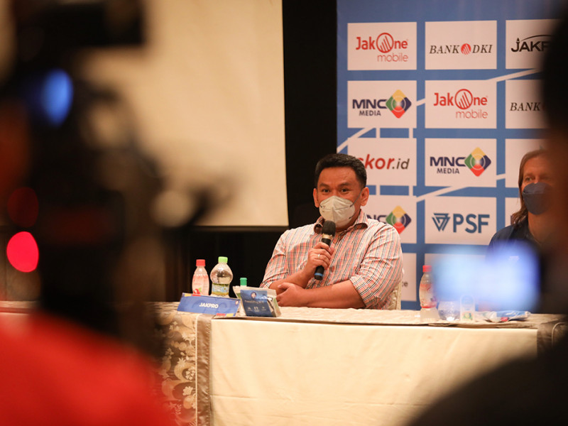 Project Director JIS, Iwan Takwin; Promotor IYC 2021, Michel Salgado; Chairman Pancoran Soccer Field, Gede Widiade; dan Direktur Pengembangan Usaha JXB, Manael Sudarman melakukan konferensi pers jelang International Youth Championship (IYC) 2021 di Hotel Shangri-La, Jakarta Pusat, Selasa (12/4). Konferensi pers juga dihadiri oleh pelatih dan perwakilan pemain tim peserta IYC 2021, yaitu Indonesia All Star U-20, Bali Unitied U-18, Barcelona U-18, dan Atletico Madrid U-18. Turnamen IYC 2021 akan diselenggarakan mulai 13 April hingga 19 April 2021 di Jakarta International Stadium (JIS). (Foto: Nugroho Sejati/beritajakarta.id)