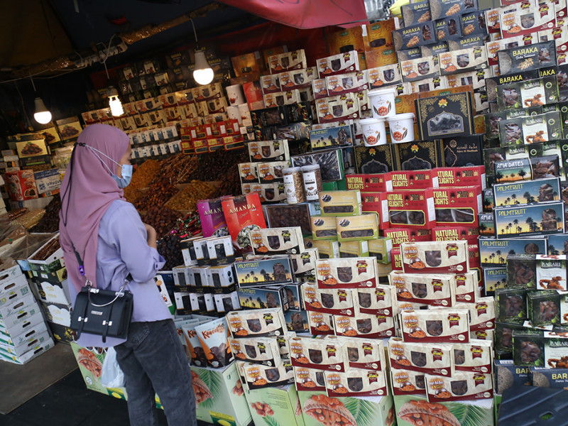 Buah yang satu ini menjadi primadona saat datangnya Bulan Suci Ramadan. Adalah kurma, buah asal Timur Tengah yang rasanya manis ini sangat cocok disantap saat berbuka dan sahur. Kandungan seratnya yang cukup tinggi menjadikan buah berwarna cokelat ini bermanfaat untuk melancarkan pencernaan. Jika ingin mencari buah kurma yang manis dan berkualitas, tak ada salahnya mampir ke kawasan Pasar Tanah Abang, Jalan KH Mas Mansyur, Kebon Kacang, Tanah Abang, Jakarta Pusat. Beragam jenis kurma seperti Ajwa, Mesir, Tunisia dan Sukari ditawarkan mulai dari Rp 30.000-300.000 per kilonya. Harga ini mengalami kenaikan 10 persen atau sekitar Rp 5.000 per kilogram dibanding sebelum pandemi. (Foto: Mochamad Tresna Suheryanto/beritajakarta.id)