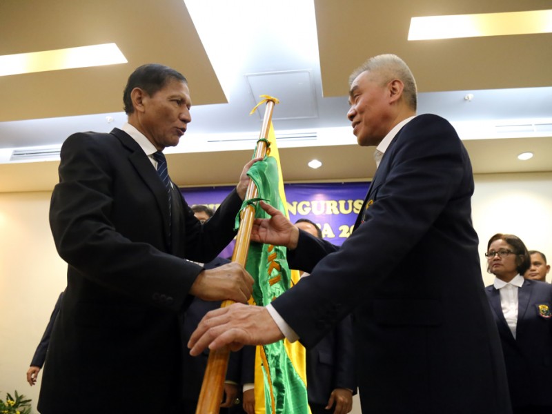 Pengurus Persatuan Bulutangkis Seluruh Indonesia (PBSI) Provinsi DKI Jakarta masa bakti 2015-2019 dikukuhkan di Gedung Binasentra, Hotel Bidakara, Jakarta Selatan, Kamis (26/3/2015). Pengurus baru diharapkan bisa membawa atlet-atlet bulutangkis Provinsi DKI Jakarta berprestasi di tingkat nasional dan internasional. (Foto : Reza/Beritajakarta.com)