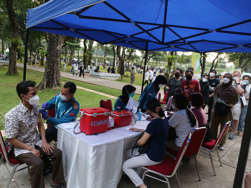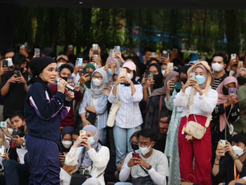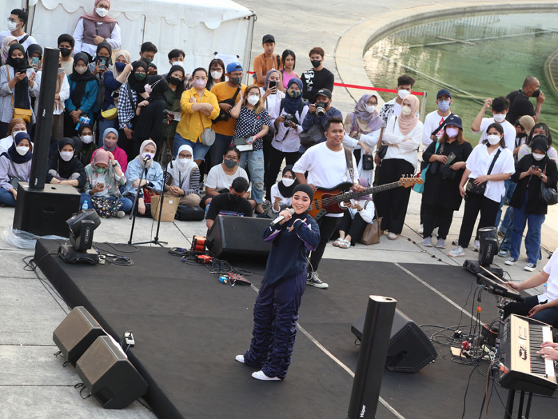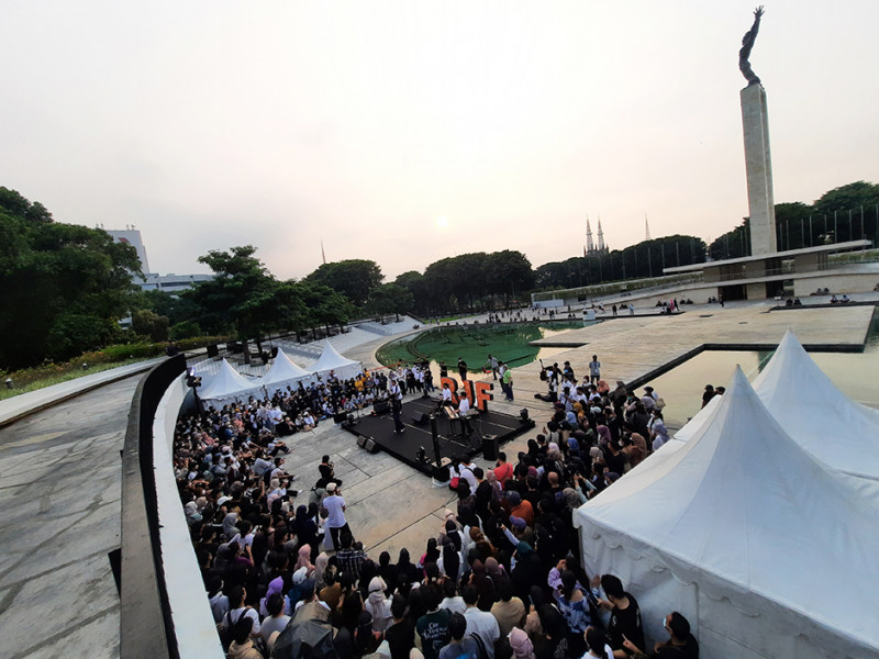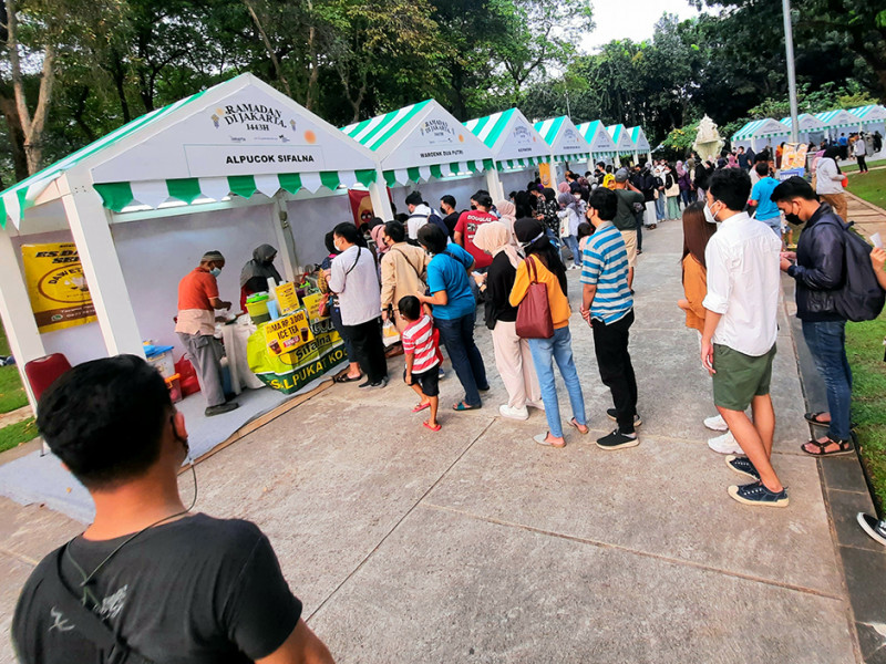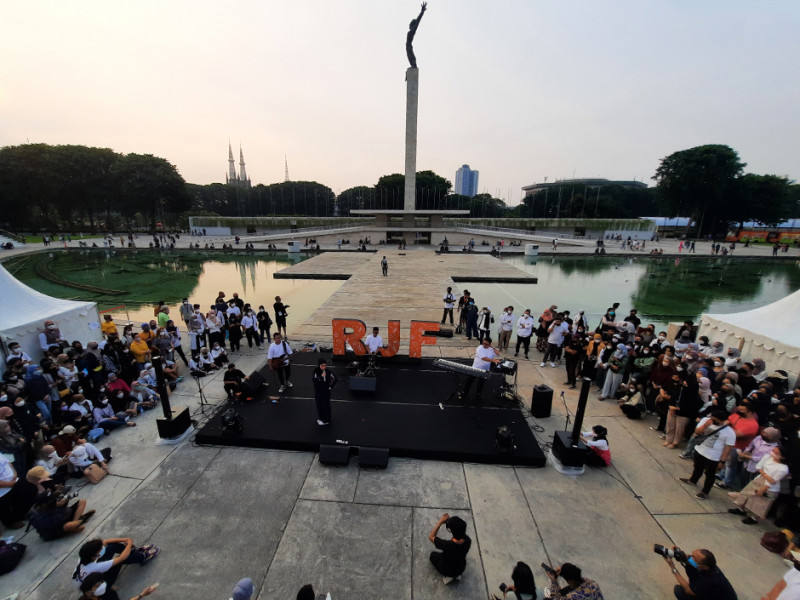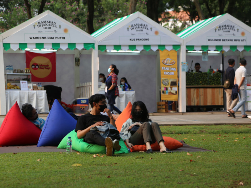 Pemerintah Provinsi (Pemprov) DKI Jakarta berkolaborasi dengan Remaja Islam Masjid Cut Meutia (Ricma), Warta Jazz menggelar Ramadhan Jazz Festival (RJF) di Taman Lapangan Banteng, Jakarta Pusat, Sabtu (16/4). Festival dibuka pukul 15.30 dengan menampilkan sejumlah penyanyi seperti Teddy Adhitia, SIVIA, Risty Tagor, Nadhif Basalamah, Diffa Chandra dan Mark Natama. Tak hanya itu, 100 UMKM binaan DKI turut meramaikan acara dengan beragam sajian kuliner yang bisa dijadikan pilihan untuk berbuka puasa. (Foto: Reza Hapiz/beritajakarta.id)