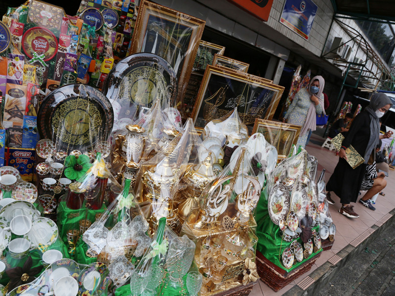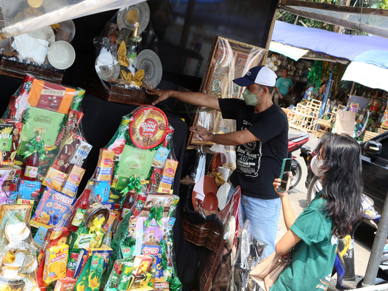 Warga Jakarta yang tengah mencari parsel untuk dibagikan saat lebaran, Pasar Kembang Cikini di Jalan Pegangsaan Timur, Cikini, Menteng, Jakarta Pusat menjadi salah satu tempat yang direkomendasikan. Jenis parsel yang ditawarkan pun beragam, mulai dari parsel makanan, barang pecah belah hingga bingkai kaligrafi dengan harga yang bervariasi. (Foto: Reza Hapiz/beritajakarta.id)