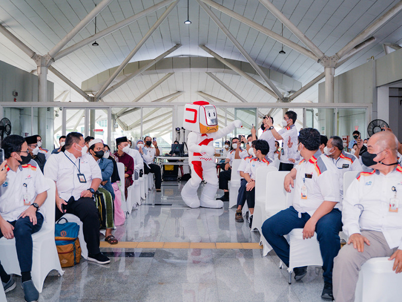 Dalam rangka ulang tahunnya yang ke-4, PT Light Rail Transit (LRT) Jakarta menggelar syukuran HUT bertemakan “LRTJ Wujudkan Transformasi Transportasi Berkelanjutan” di Stasiun LRT Pulomas, Jakarta Timur, Senin (18/4). Syukuran ini sekaligus melaksanakan peluncuran LARATA, ikon baru LRTJ yang sarat dengan nilai-nilai yang dianut LRTJ dalam mewujudkan visi-misi perusahaan serta memberikan layanan terbaik kepada masyarakat. (Foto: Nugroho Sejati/beritajakarta.id)