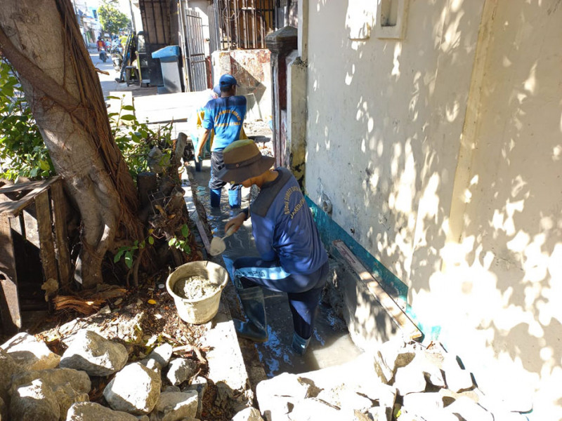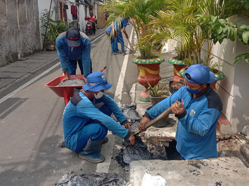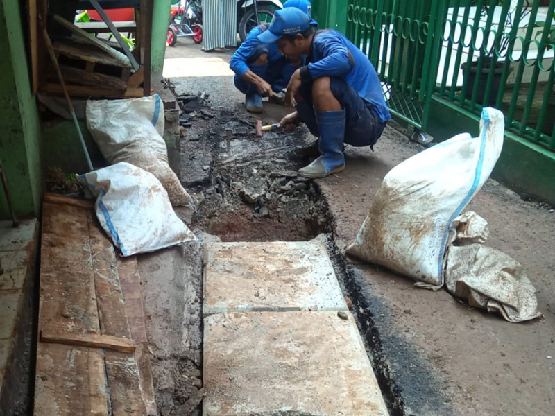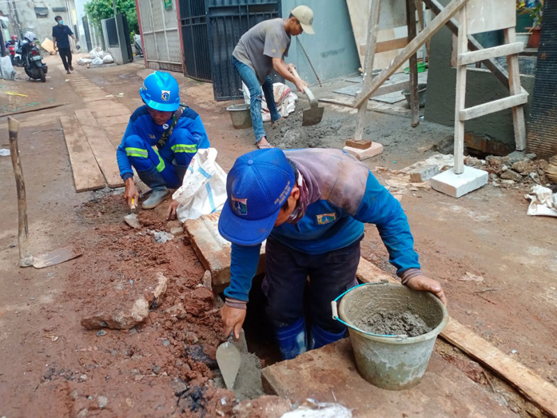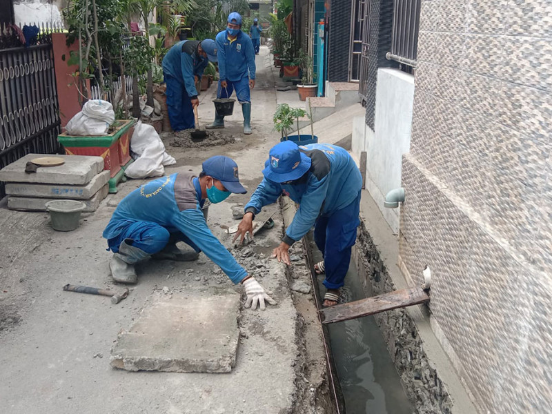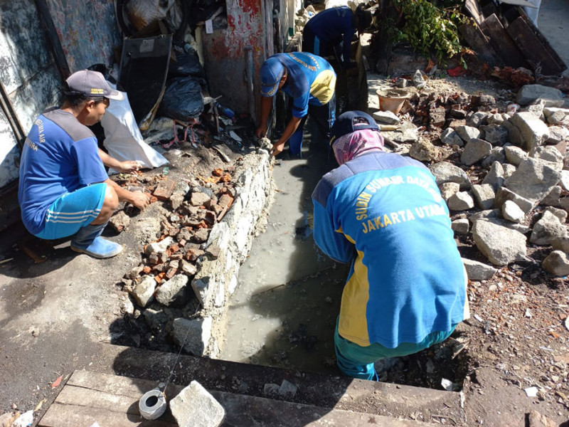 Dinas Sumber Daya Air (SDA) melalui Suku Dinas (Sudin) melakukan pengurasan saluran di Jakarta Pusat, perbaikan saluran di Jakarta Utara, serta pembuatan turap di sejumlah titik saluran di Jakarta Selatan. Kegiatan tersebut guna mengantisipasi terjadinya genangan saat hujan lebat. Pengerjaan sudah berjalan sejak pertengahan Maret 2022 hingga saat ini. (Foto: Dinas Sumber Daya Air Provinsi DKI Jakarta)