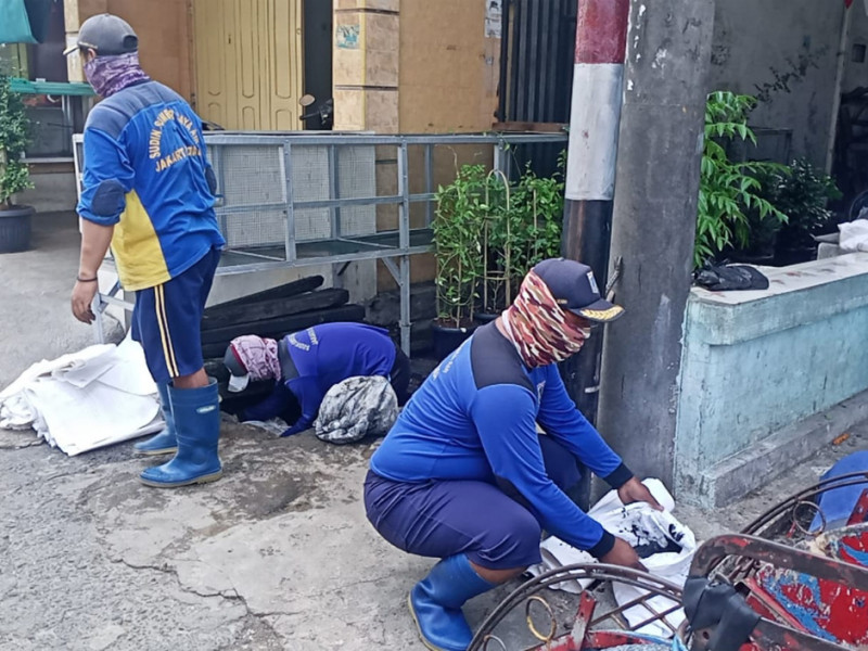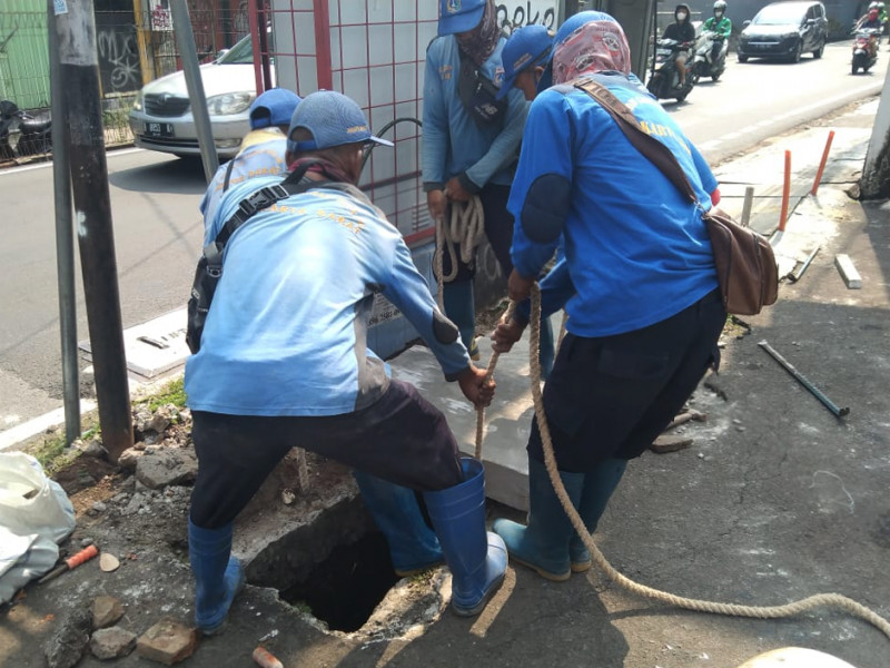 Kegiatan perbaikan saluran PHB Pinang Kalijati, di jalan Pinang Kalijati Kel. Pondok Labu, Kec. Cilandak, Jakarta Selatan. Serta pengurasan saluran di Jalan Ongki RW.09, Kelurahan Pluit, Jakarta Utara, dan pemasangan tutup plat saluran di jalan Gili Samping, Kel. Kemanggisan, Kec. Kembangan, Jakarta Barat. (Foto: Dinas Sumber Daya Air Provinsi DKI Jakarta)