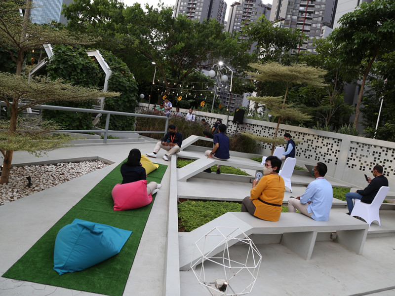 Dinas Pariwisata dan Ekonomi Kreatif (Parekraf) Provinsi DKI Jakarta berkolaborasi dengan Apartemen Taman Rasuna mengadakan Jakarta Ramadan Street Music di Pocket Park Taman Rasuna, Setiabudi, Jakarta Selatan, pada 20-22 dan 27-29 April 2022. Kegiatan ini menampilkan sejumlah grup band dan sanggar binaan (Jakpreneur) Dinas Parekraf DKI Jakarta yang siap menemani aktivitas ngabuburit warga dengan alunan musik menghibur. Tak hanya itu, pihaknya juga menyiapkan takjil bagi warga yang hadir. (Foto: Reza Hapiz/beritajakarta.id)