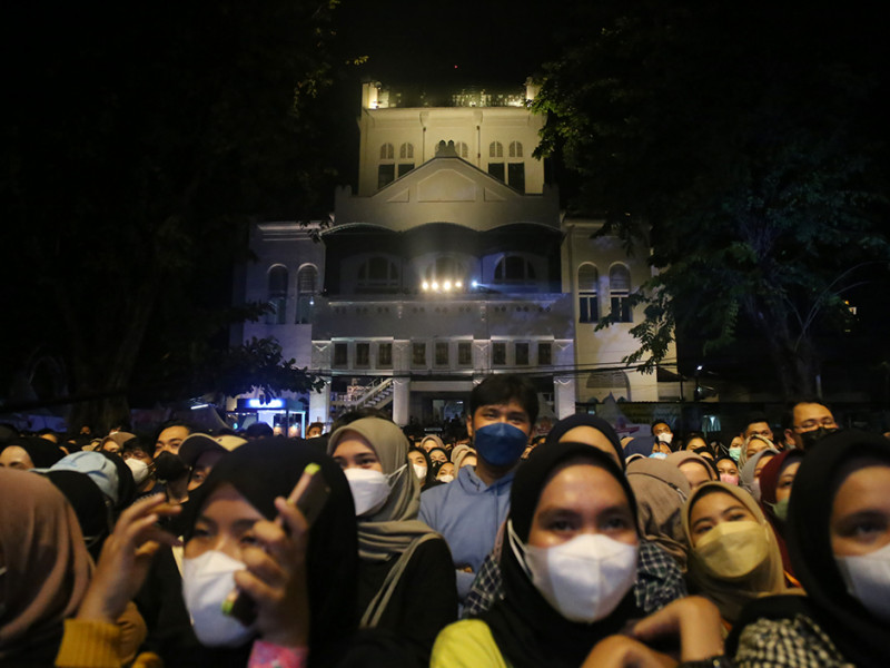 Puncak kegiatan Ramadhan Jazz Festival (RJF) 2022 berjalan meriah di pelataran Masjid Cut Meutia, Kebon Sirih, Menteng, Jakarta Pusat, Jumat (22/4). Festival yang diadakan oleh Remaja Islam Masjid Cut Meutia (RICMA) bekerja sama dengan WartaJazz tersebut diramaikan sejumlah musisi tanah air seperti Rizky Febian, Mahalini, Teddy Adhitya, dan Gangga. Perhelatan tahunan ini kembali digelar dengan tema \'Melody of Kindness\' yang bermakna tatkala melodi dilantunkan, kebaikan senantiasa disyiarkan. Melalui festival ini, para penonton diajak berpartisipasi dengan melakukan donasi yang seluruhnya akan disalurkan untuk kegiatan sosial. (Foto: Mochamad Tresna Suheryanto/beritajakarta.id)