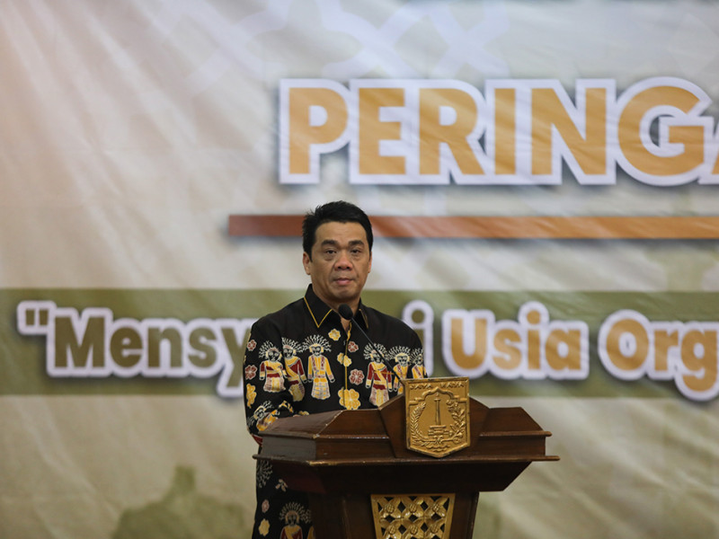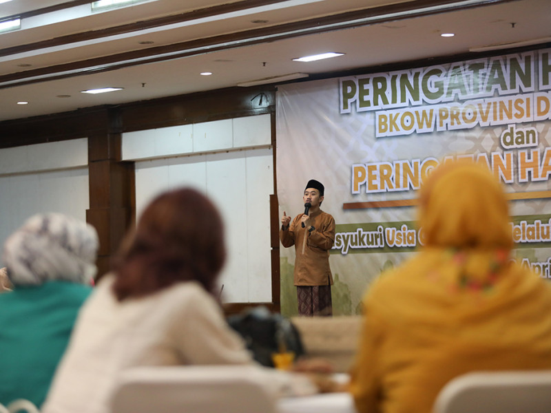 Wakil Gubernur DKI Jakarta, Ahmad Riza Patria, menghadiri acara peringatan HUT ke-68 Badan Kerja Sama Organisasi Wanita (BKOW) di Gedung Nyi Ageng Serang, Setiabudi, Jakarta Selatan, Sabtu (23/4). Acara yang dibarengi dengan peringatan Hari Kartini tersebut diisi dengan penyerahan santunan dan bingkisan kepada 20 anak yatim secara simbolis. Tema peringatan HUT ke-68 BKOW adalah \"Mensyukuri Usia Organisasi Melalui Semangat Inspirasi Kartini\". (Foto: Nugroho Sejati/beritajakarta.id)
