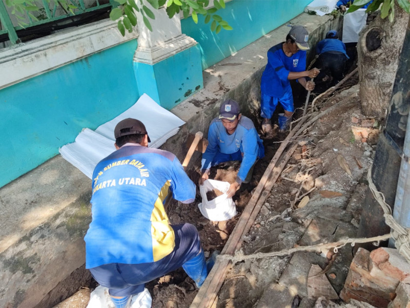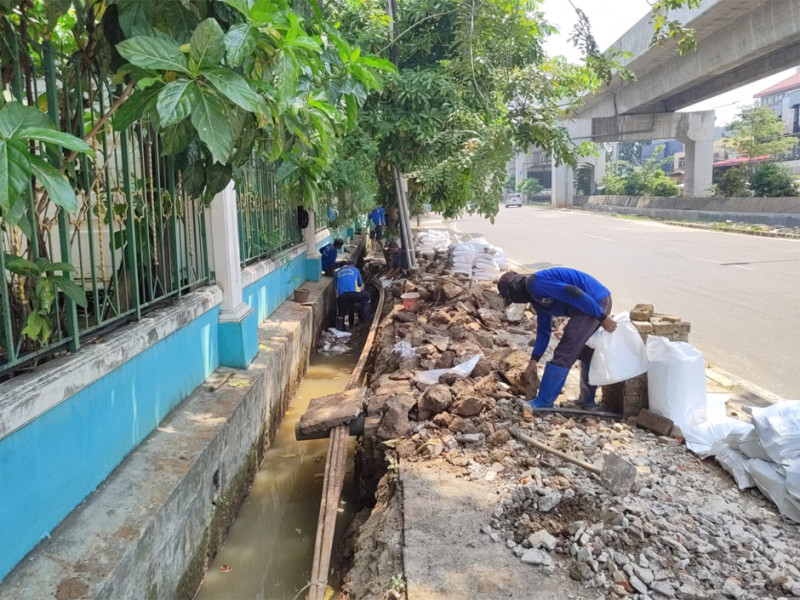 Kegiatan perbaikan turap saluran di Jalan Kelapa Nias, samping Masjid Raya AL - Musyawarah, Kelurahan Kelapa Gading Timur, Kecamatan Kelapa Gading. Serta pengurasan saluran di Jalan Sunter Agung RW 11, Sunter, Tanjung Priok, Jakarta Utara. Pelaksanaan kegiatan pada tanggal 18 April 2022. (Foto: Dinas Sumber Daya Air Provinsi DKI Jakarta)