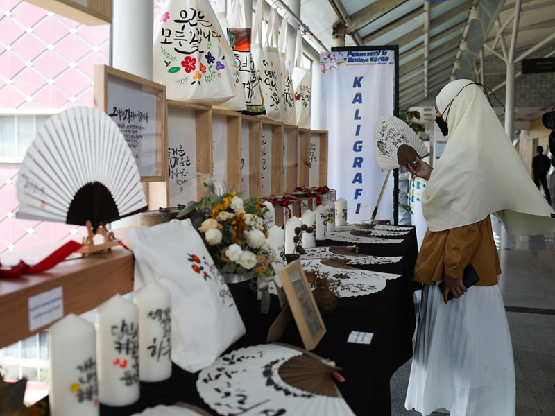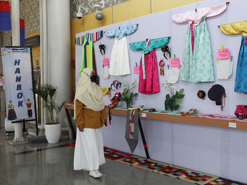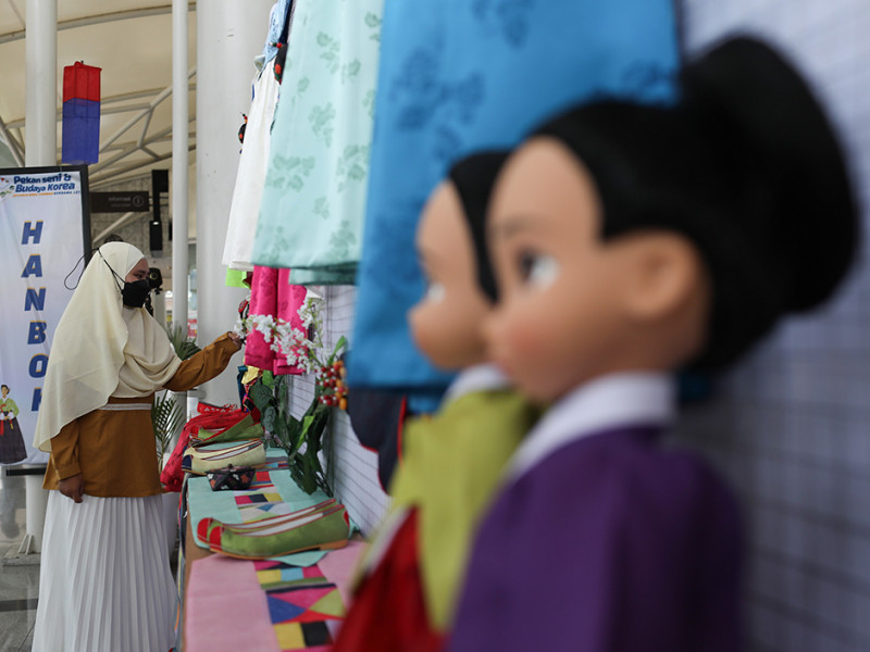 PT Light Rail Transit (LRT) Jakarta bersama Korean Cultural Center Indonesia (KCCI) menggelar acara \"Pekan Seni dan Budaya Korea Bersama LRT Jakarta\" di Stasiun LRTJ Boulevard Utara Lantai 2, Kelapa Gading, Jakarta Utara, pada tanggal 23-29 April 2022. Pengunjung dapat melihat pameran hanbok anak, kaligrafi, dan kerajinan khas Korea pada pekan seni tersebut. Pekan Seni dan Budaya Korea di LRT Jakarta dibuka setiap hari pada pukul 09.00-16.00 dan tidak dipungut biaya. (Foto: Nugroho Sejati/beritajakarta.id)