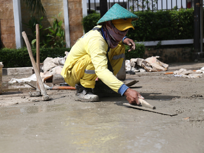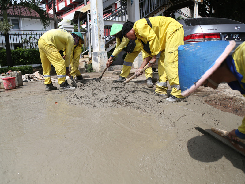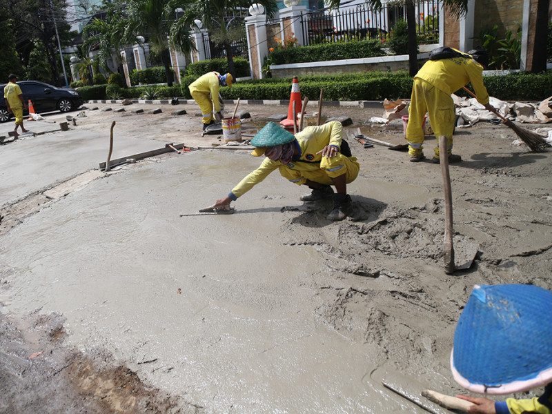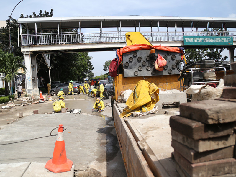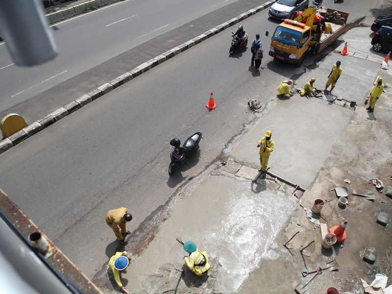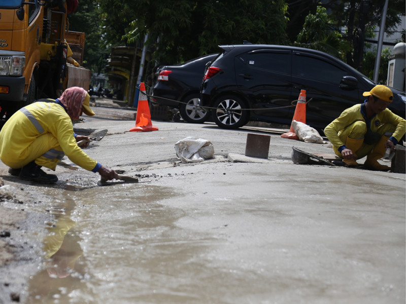 Suku Dinas (Sudin) Bina Marga Jakarta Pusat mengerahkan 10 personel untuk memperbaiki trotoar di Jalan Jenderal Suprapto, Cempaka Putih Timur, tepatnya depan Kantor Pengadilan Negeri Jakarta Pusat, Selasa (26/4). Perbaikan dilakukan lantaran kondisi trotoar mengalami kerusakan dan ambles. Dengan dilakukannya perbaikan ini diharapkan pengguna trotoar makin merasa aman dan nyaman saat melintas. (Foto: Mochamad Tresna Suheryanto/beritajakarta.id)