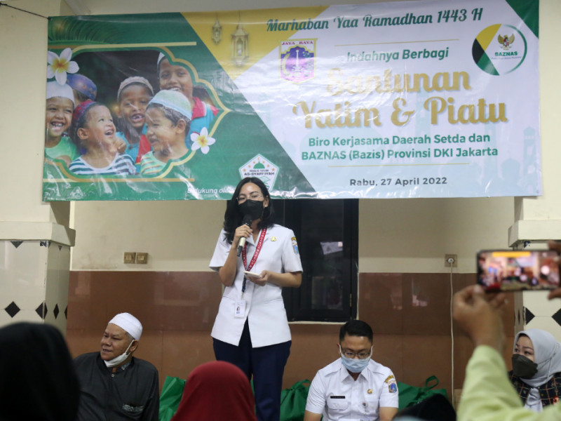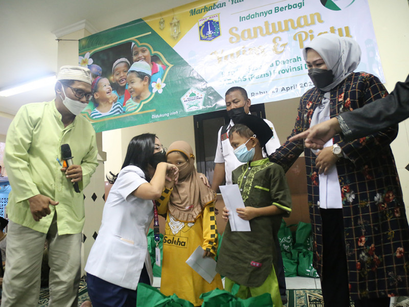 Biro Kerja Sama Daerah Setda bersama Baznas (Bazis) Provinsi DKI Jakarta menggelar santunan yatim dan duafa di Gedung Interaksi Warga RW 07 Kelurahan Galur, Johar Baru, Jakarta Pusat, Rabu (27/4). Adapun santunan tersebut disalurkan kepada 54 anak yatim dan duafa dari Kelurahan Galur dan Serdang. (Foto: Mochamad Tresna Suheryanto/beritajakarta.id)