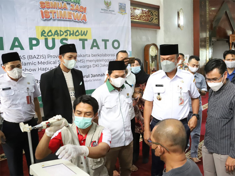 Pemerintah Kota (Pemkot) bersama Baznas Bazis Jakarta Selatan dan Islamic Medical Service (IMS) menggelar layanan hapus tato gratis di Masjid Darul Jannah, Kantor Wali Kota Jakarta Selatan, Rabu (27/4). Antusias masyarakat terhadap program ini terbilang cukup tinggi. Tercatat sebanyak 100 warga sudah mendaftarkan diri untuk menghapus tatonya. (Foto: Reza Hapiz/beritajakarta.id)