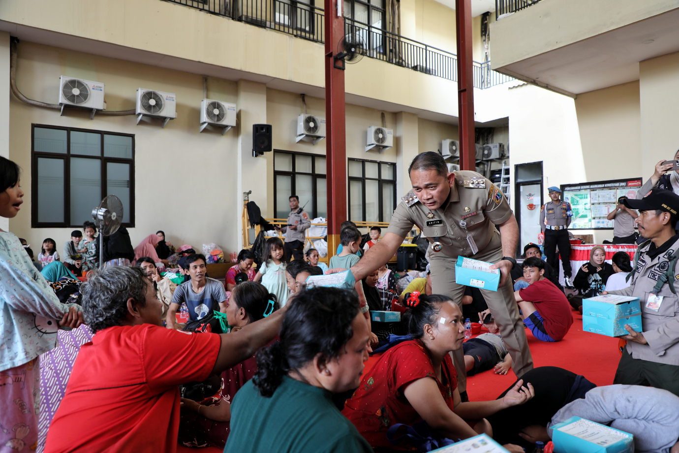 Suku Dinas Sosial Jakarta Pusat mendistribusikan bantuan sebanyak 2.000 bungkus makanan siap saji bagi warga terdampak kebakaran di Jalan Kemayoran Gempol Gg Rahayu, RW 04, Kebon Kosong, Kemayoran, Jakarta Pusat, Selasa (21/1). Pemberian makanan siap saji ini merupakan langkah awal yang disiapkan Suku Dinas Sosial Jakarta Pusat untuk para penyintas kebakaran.