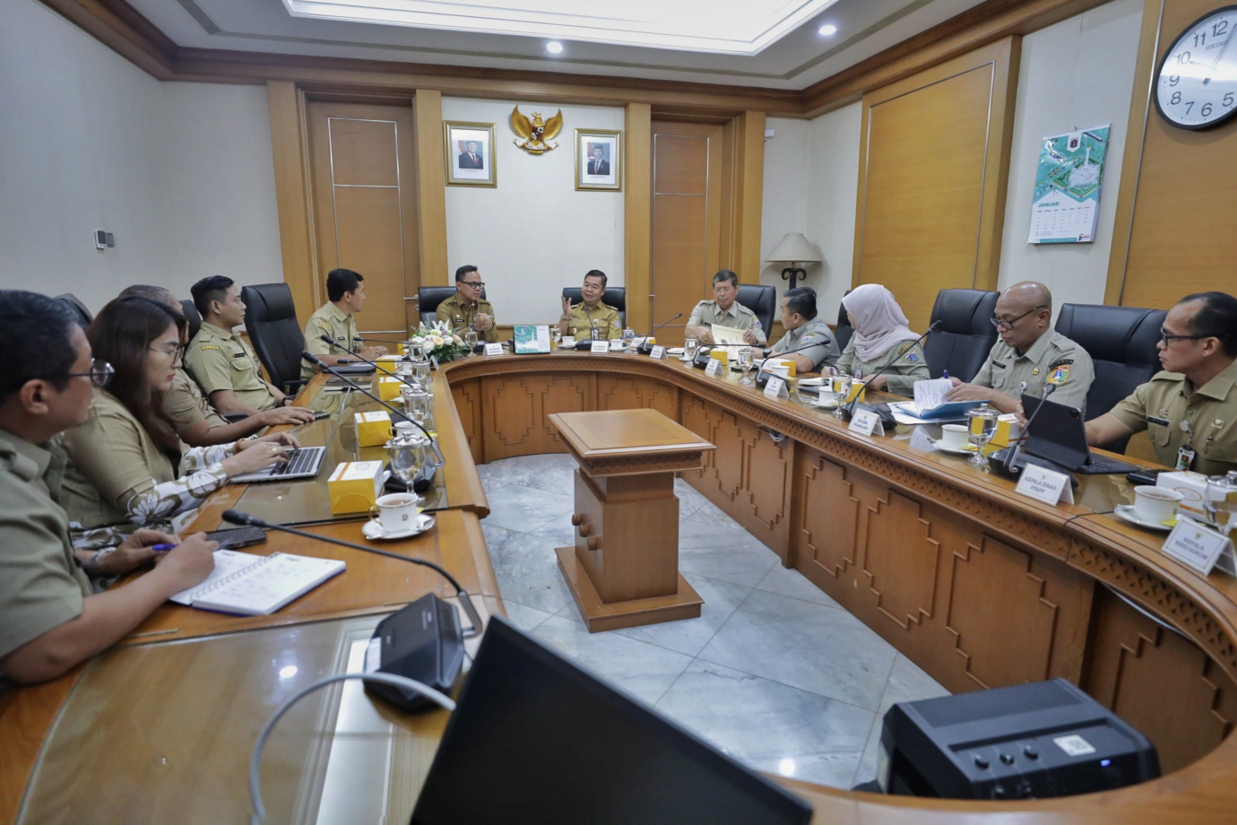 Penjabat (Pj) Gubernur DKI Jakarta, Teguh Setyabudi menerima Wakil Menteri Dalam Negeri, Bima Arya di Ruang TPUT, Balai Kota DKI Jakarta, Senin (20/1). Pertemuan ini pembahasan Peraturan Gubernur (Pergub) Nomor 2 Tahun 2025 yang memperketat aturan perkawinan dan perceraian bagi ASN DKI Jakarta.