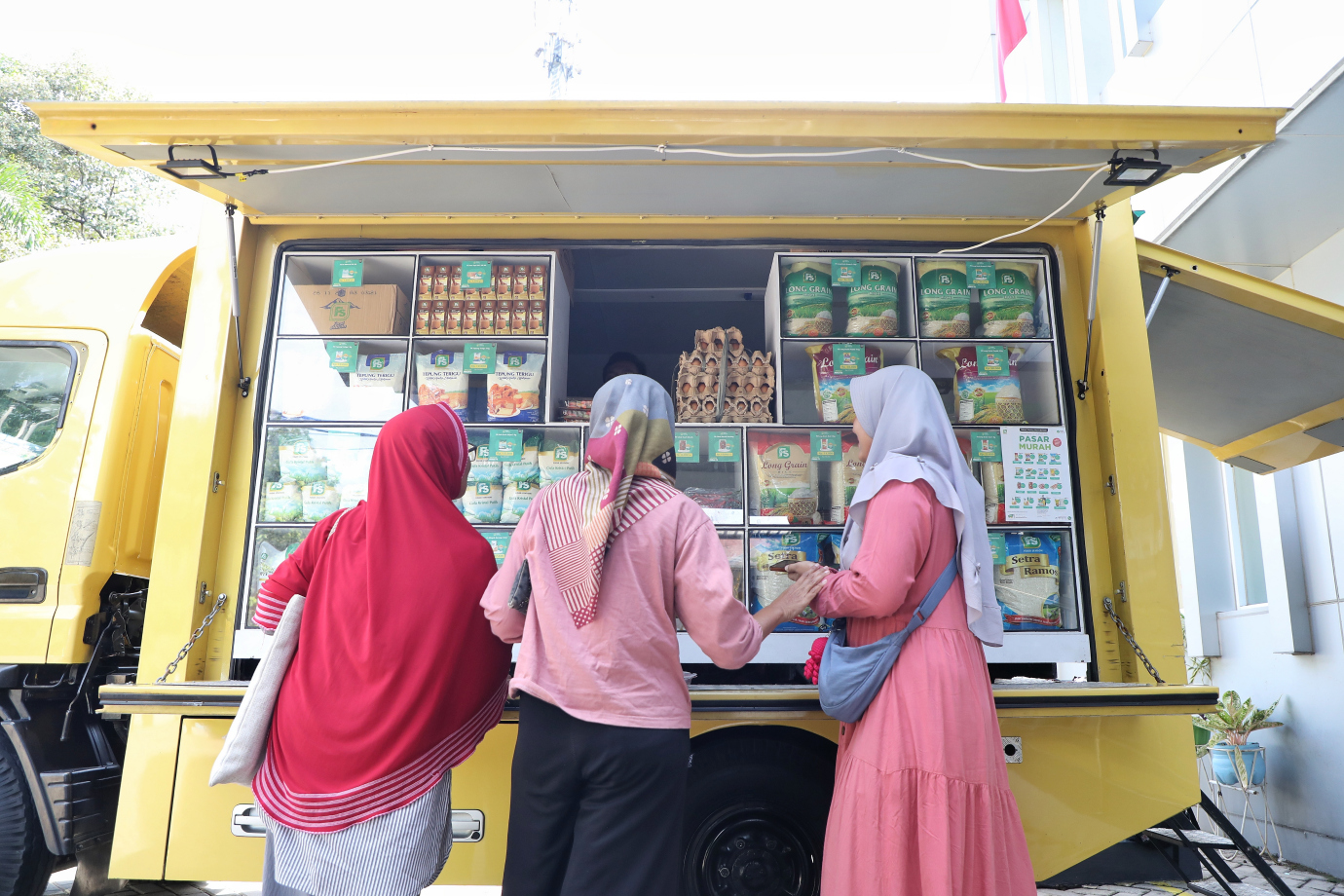 PT Food Station menggelar pasar murah di Halaman Kantor Kelurahan Cilandak Timur, Pasar Minggu, Jakarta Selatan, Kamis (15/11). Pasar murah ini juga digelar di lima kelurahan lainnya bertujuan untuk memenuhi ketersediaan bahan pangan masyarakat, menjaga ketersediaan, kelancaran distribusi dan stabilitas harga bahan pangan di Provinsi DKI Jakarta.