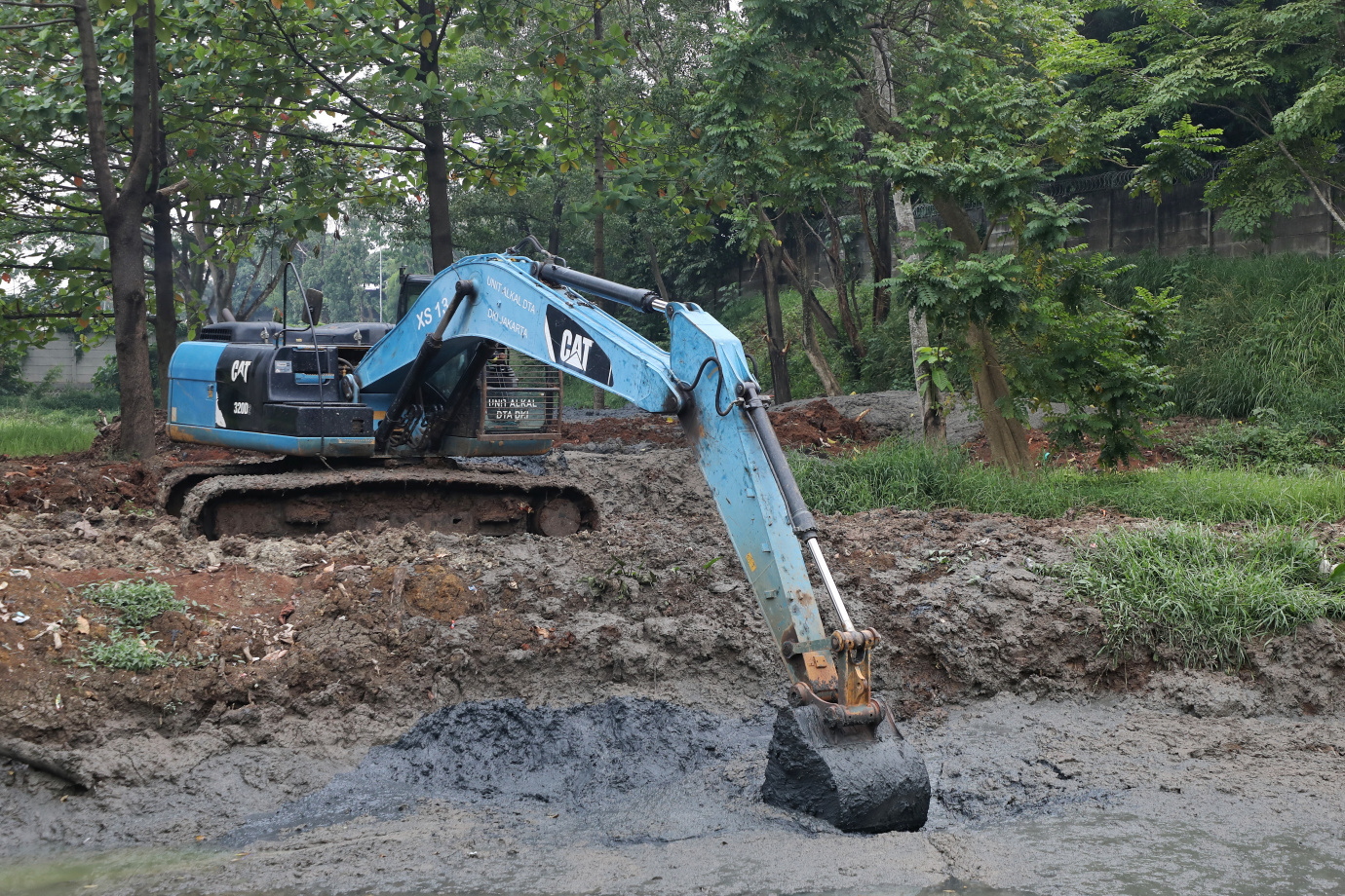 Sudin SDA Jakarta Timur lakukan pengerukan lumpur serta penambahan waduk di Taman Cempaka, Cilangkap, Cipayung, Jakarta Timur, Selasa (12/11). Kegiatan tersebut dilakukan agar waduk bisa menampung debit air lebih banyak guna mencegah terjadinya genangan atau banjir di Jakarta Timur.