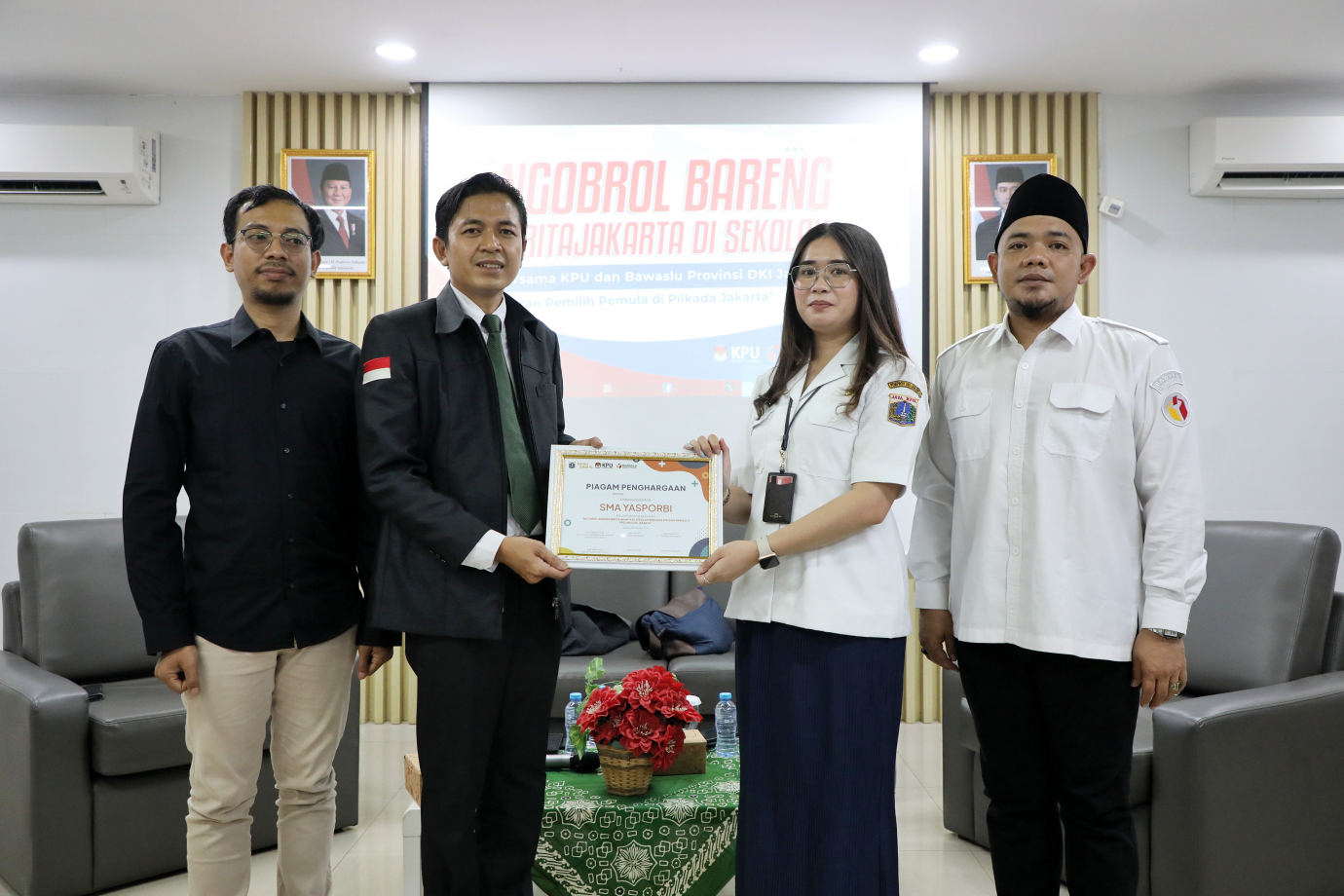 Dinas Komunikasi, Informatika dan Statistik (Kominfotik) DKI Jakarta bekerjasama dengan Komisi Pemilihan Umum (KPU) dan Badan Pengawas Pemilihan Umum (Bawaslu) Provinsi DKI Jakarta menggelar acara Ngobrol Bareng Berita Jakarta di SMA Yasporbi, Tebet, Jakarta Selatan, Rabu (30/10). Acara yang mengusung tema ‘Peran Pemilih Pemula di Pilkada DKI Jakarta’ ini bertujuan untuk menyosialisasikan pentingnya partisipasi pemilih pemula pada Pilkada DKI Jakarta yang akan berlangsung pada 27 November 2024 mendatang.