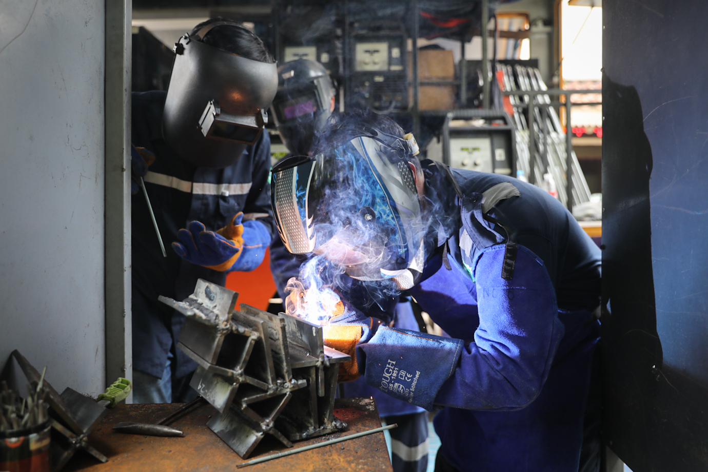 Sebanyak 10 warga mengikuti pelatihan las yang diadakan oleh Pusat Pelatihan Kerja Khusus Pengembangan Las (PPKKPL) Dinas Tenaga Kerja, Transmigrasi dan Energi (Nakertransgi) DKI Jakarta di Kantor Kelurahan Sumur Batu, Kemayoran, Jakarta Pusat, Senin (28/10). Pelatihan yang berlangsung sejak Rabu (23/10) hingga Jumat (1/11) tersebut digelar untuk meningkatkan keahlian warga dengan tujuan dapat membuka usaha las sendiri.