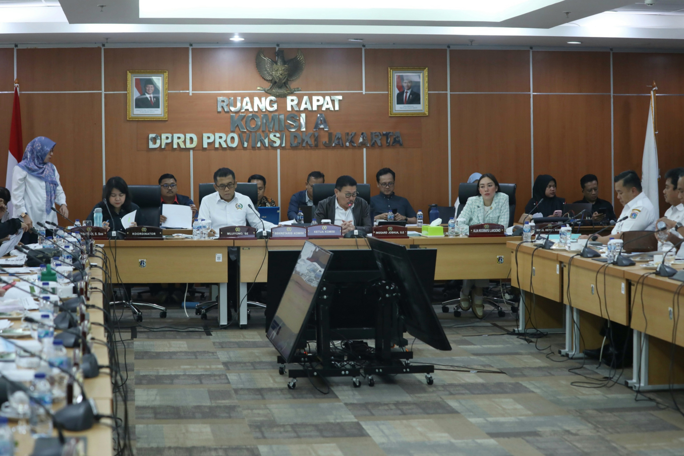 Komisi A Dewan Perwakilan Rakyat Daerah (DPRD) Provinsi DKI Jakarta menggelar rapat kerja (raker) bersama Organisasi Perangkat Daerah (OPD) Pemerintah Provinsi DKI Jakarta di Ruang Rapat Komisi A DPRD DKI Jakarta, Rabu (23/10). Rapat ini beragendakan konsultasi program kerja dan kegiatan tahun anggaran 2025 yang diikuti seluruh Walikota dan Bupati Kepulauan Seribu.