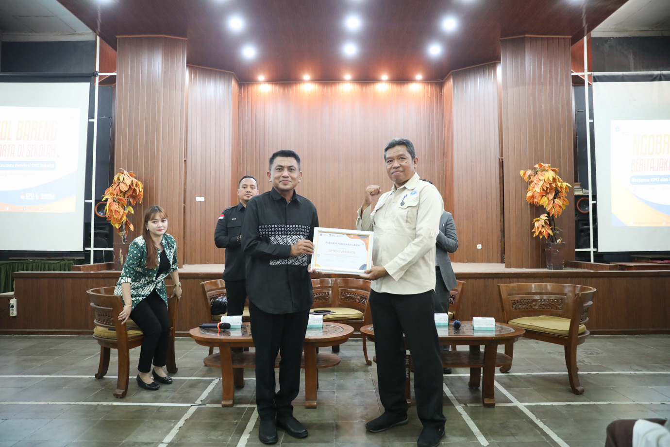 Sebanyak 200 pelajar mengikuti kegiatan Ngobrol Bareng Beritajakarta di SMK Negeri 1 Jakarta, Jalan Budi Utomo, Sawah Besar, Jakarta Pusat, Rabu (23/10). Kegiatan yang menghadirkan pembicara dari KPU dan Bawaslu Provinsi DKI Jakarta tersebut membahas tentang peran pemilih pemula pada Pilkada DKI Jakarta yang akan berlangsung pada 27 November 2024.