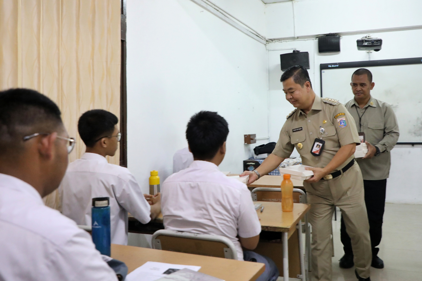 Penjabat (Pj) Gubernur DKI Jakarta, Teguh Setyabudi meninjau pelaksanaan uji coba Makan Bergizi Gratis (MBG) di SMKN 26 Rawamangun, Jakarta Timur, pada Senin (21/10).