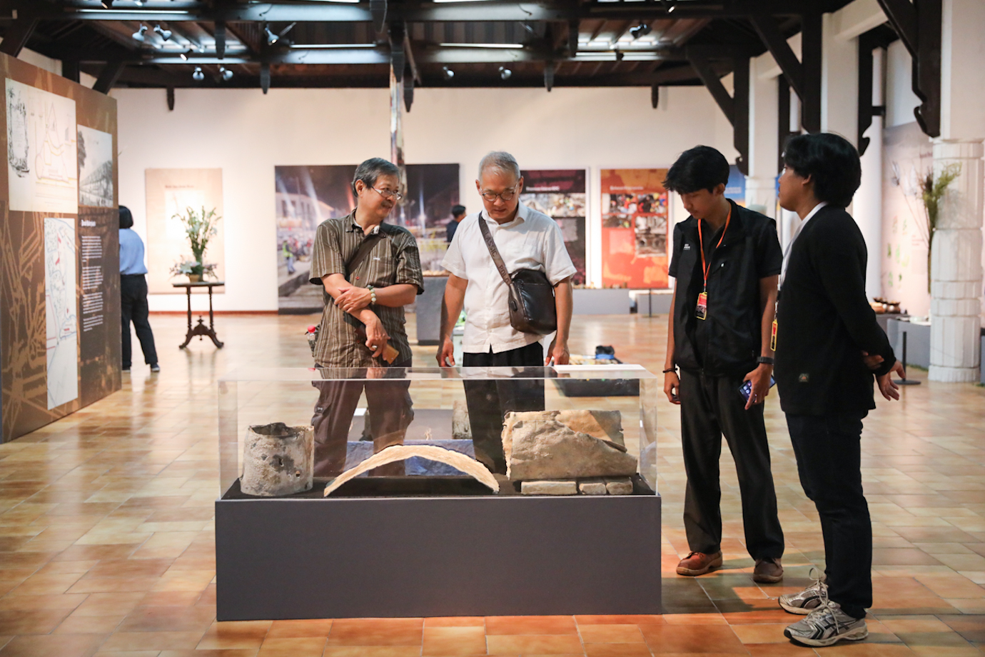 Sejumlah pengunjung mengamati temuan arkeologis dari penggalian proyek pembangunan MRT Jakarta Fase 2A dalam pameran \"Jakarta dari Bawah Tanah\" di Bentara Budaya Jakarta (BBJ), Tanah Abang, Jakarta Pusat, Kamis (26/9). Pameran dan diskusi terkait temuan di proyek MRT Jakarta di kawasan Glodok dan Pintu Besar Selatan itu terselenggara atas kerja sama Perkumpulan Ahli Arkeologi Indonesia (IAAI) dan Museum dan Cagar Budaya (MCB) Kemendikbud-Ristek, serta dukungan dari Pemprov DKI Jakarta.