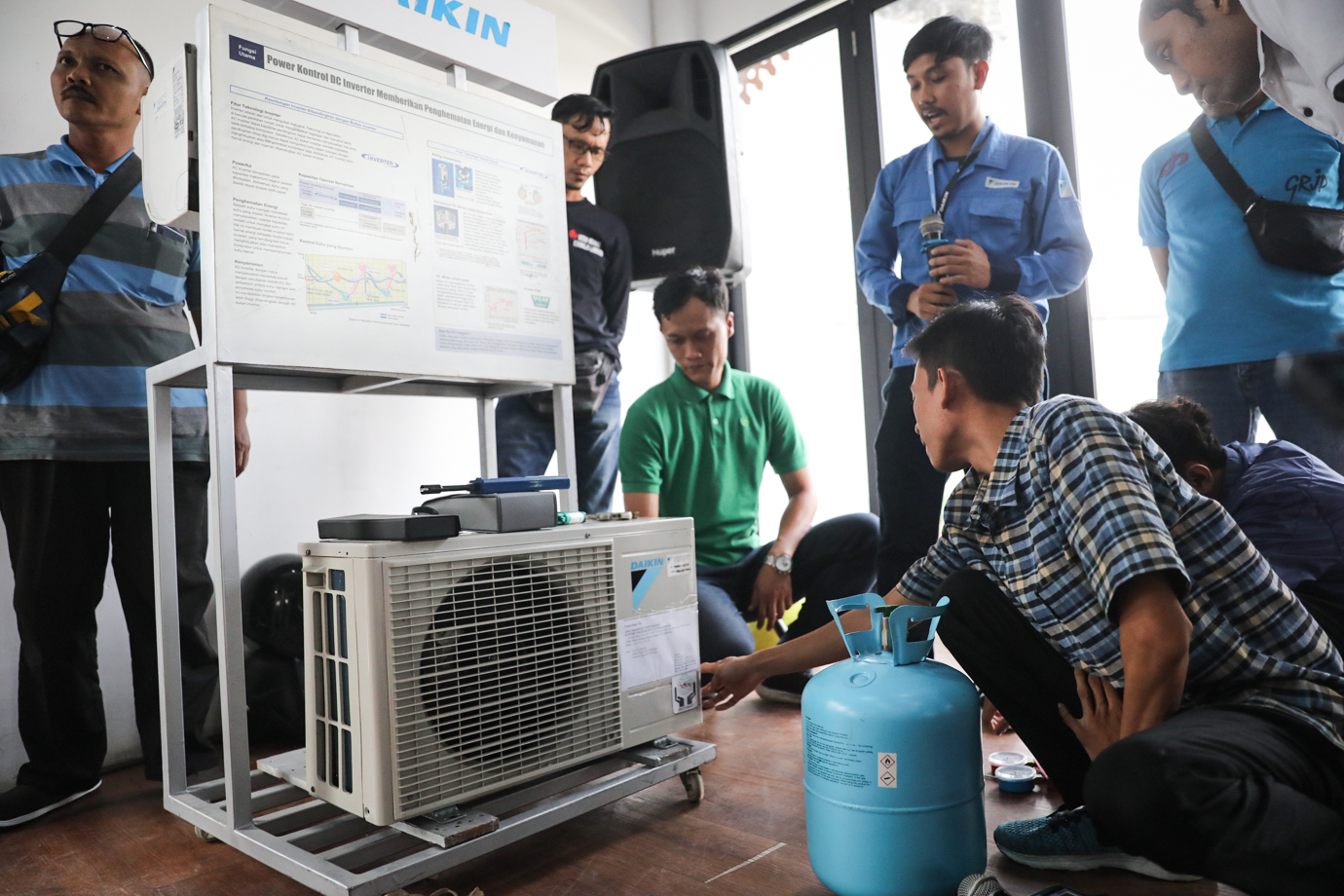 Sebanyak 50 peserta mengikuti pelatihan servis air conditioner (AC) di Aula Bale Gede, Kantor Kelurahan Kramat Jati, Jakarta Timur, Selasa (24/9). Kegiatan ini diinisiasi Suku Dinas Tenaga Kerja, Transmigrasi dan Energi (Sudin Nakertransgi) Jakarta Timur menggelar pelatihan gratis tersebut selama lima hari pada pada 23 - 27 September 2024.
