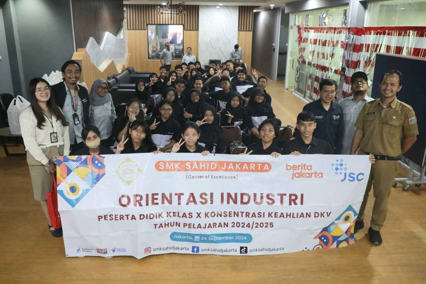 34 Murid SMK Sahid Jaya melakukan kunjungan ke Kantor Website Berita Resmi Pemerintah Provinsi DKI Jakarta Beritajakarta di 2 Blok F Lantai 2, Balai Kota DKI Jakarta, Selasa (24/9). Dalam kunjungan ini para murid SMK diperkenalkan tentang sejarah dan mekanisme yang dikerjakan oleh Beritajakarta.