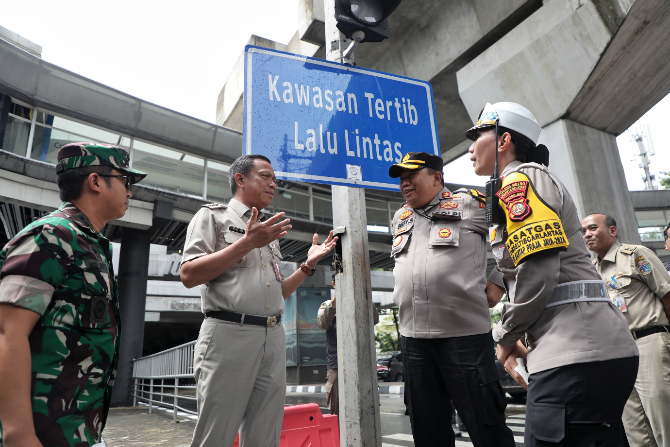Wali Kota Jakarta Selatan, Munjirin bersama unsur terkait melakukan pencanangan Kawasan Tertib Lalu Lintas (KTL) di Simpang CSW, Kebayoran Baru, Selasa (24/9). Munjirin berharap, dengan pencanangan Kawasan Tertib Lalu Lintas (KTL) di Simpang CSW, khususnya pada Jalan Sisingamangaraja ini diharapkan memberikan ruang keamanan dan kenyaman, serta keselamatan bagi masyarakat yang melintasi jalan tersebut.