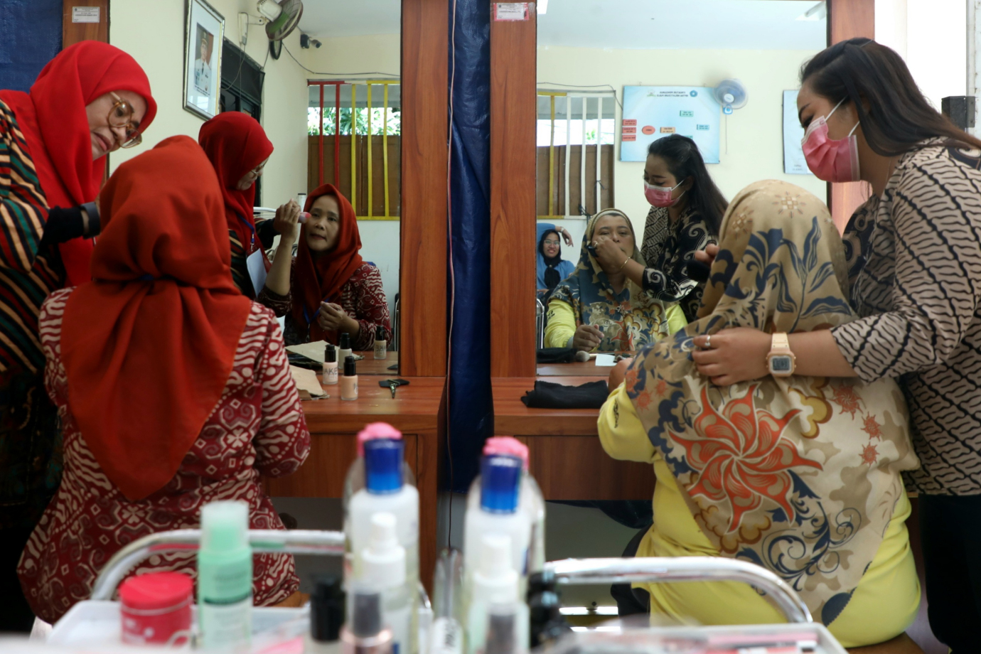 10 warga Kecamatan Gambir mengikuti pelatihan Mobile Training Unit (MTU) Kejuruan Tata Rias yang digelar oleh Pusat Pelatihan Kerja Daerah (PPKD) Jakarta Pusat di Ruang Publik Terpadu Ramah Anak (RPTRA) Melati Duri Pulo, Jalan Petojo Barat XI, Kelurahan Duri Pulo, Gambir, Jakarta Pusat, Jumat (20/9). Para peserta diberikan materi pelatihan dasar tata rias mulai dari facial, perawatan rambut, pewarnaan rambut dan merias wajah.