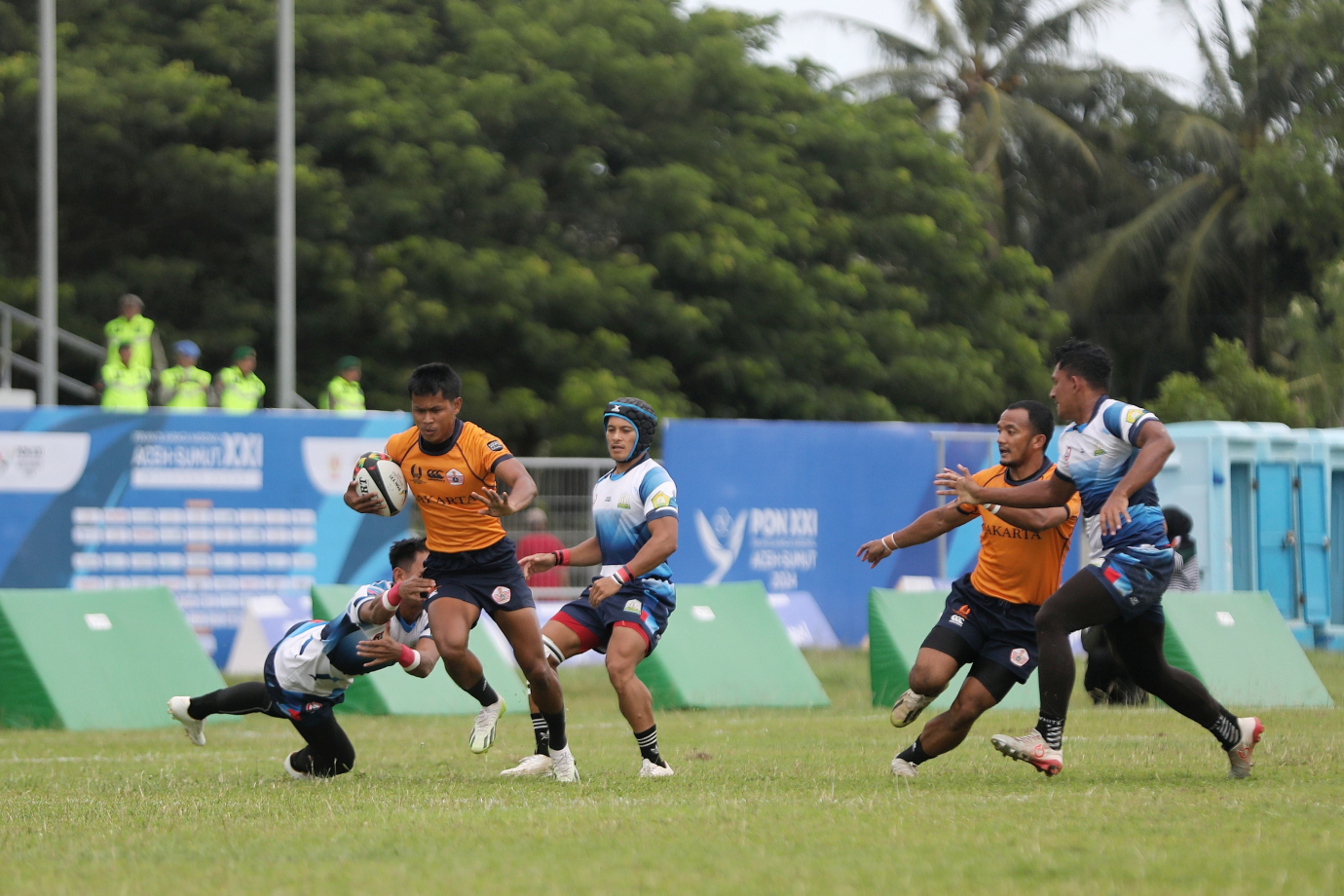 Tim rugby putra DKI Jakarta berhasil meraih kemenangan meyakinkan atas tim rugby Aceh dengan skor 31-12 pada partai final yang digelar di Stadion Mini USK, Banda Aceh, Kamis (19/9). Hasil tersebut sekaligus memastikan tim rugby DKI Jakarta berhasil mengawinkan dua medali emas yakni pada nomor pertandingan putra dan putri. #kabarpon2024