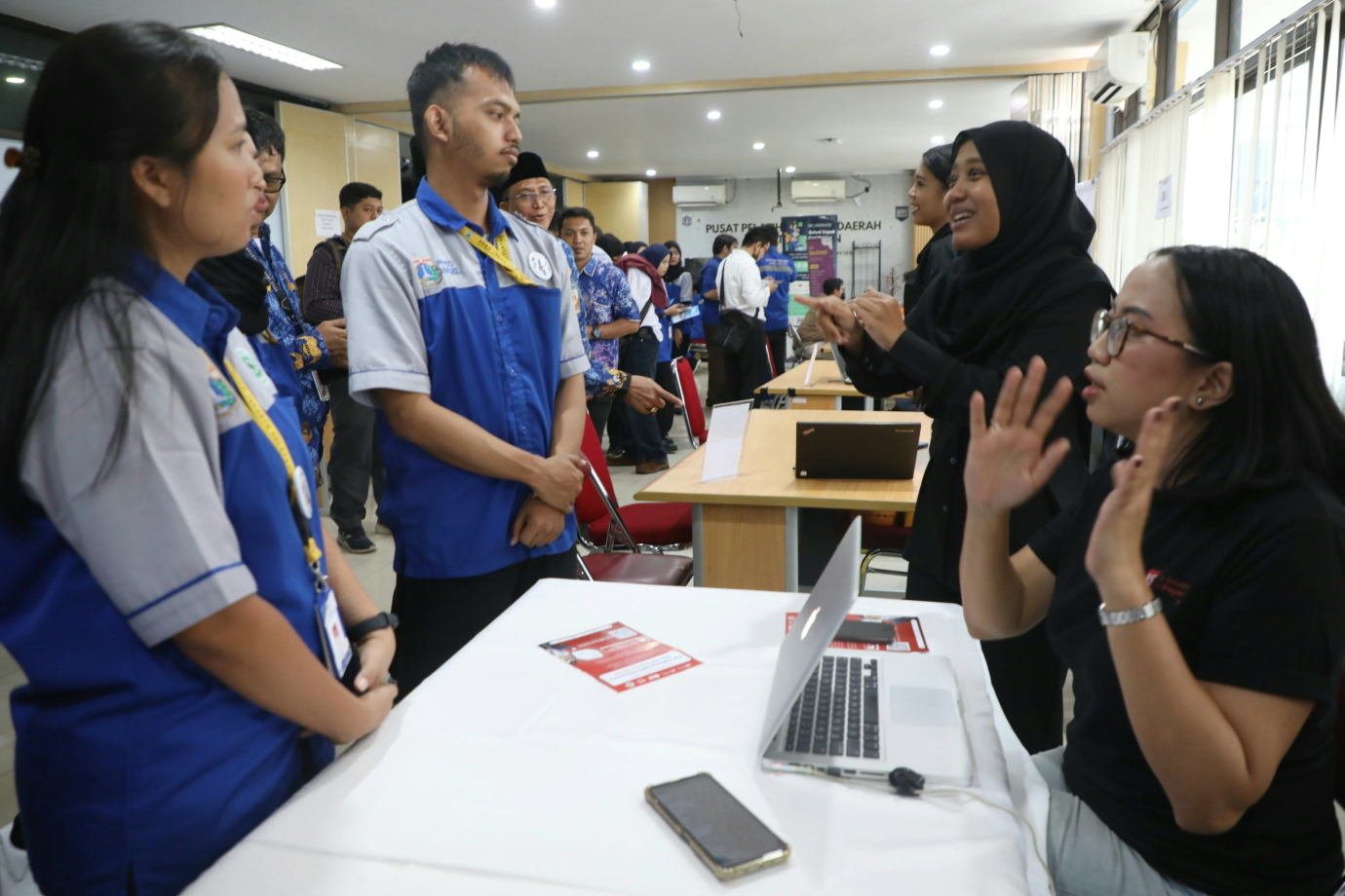 Pusat Pelatihan Kerja Daerah (PPKD) Jakarta Selatan menggelar Bursa Kerja Mini di Kantor PPKD Jakarta Selatan, Jalan Buncit Raya, Kalibata, Jakarta Selatan, Kamis (19/9). Bursa Kerja yang dikhususkan untuk Alumni PPKD Jakarta Selatan ini menyediakan 129 lowongan kerja dari 22 perusahaan.
