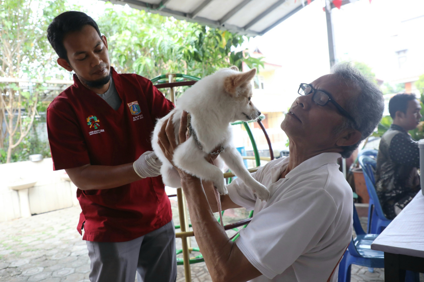 Suku Dinas Ketahanan Pangan, Kelautan dan Pertanian (Sudin KPKP) Jakarta Timur menggelar vaksinasi hewan penular rabies (HPR) di Sekretariat RW 03, Malaka Jaya, Duren Sawit, Jakarta Timur, Kamis (12/9). Dalam kegiatan ini sebanyak 43 ekor HPR berhasil di vaksinasi terdiri dari 38 ekor kucing dan lima ekor anjing.