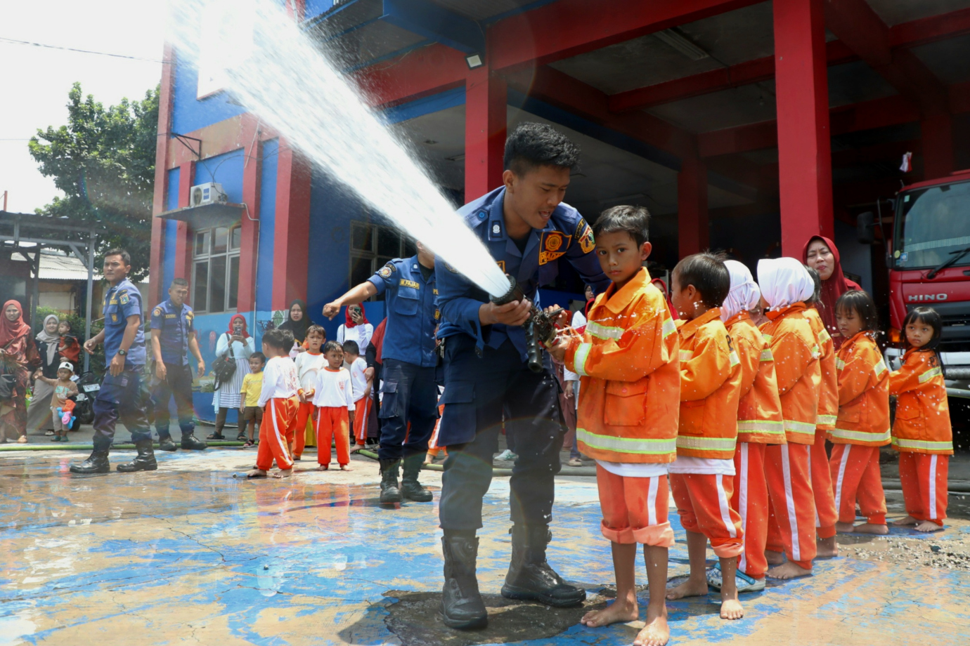 Sebanyak 20 siswa Pendidikan Anak Usia Dini (PAUD) Tunas Harapan, Pondok Kelapa, mengunjungi Kantor Pemdam Kebakaran Sektor 7 Duren Sawit di Jalan Raya Kalimalang, Jakarta Timur, Jumat (6/9). Kegiatan ini bertujuan untuk memperkenalkan berbagai peralatan dan tugas pokok petugas pemadam kebaran.