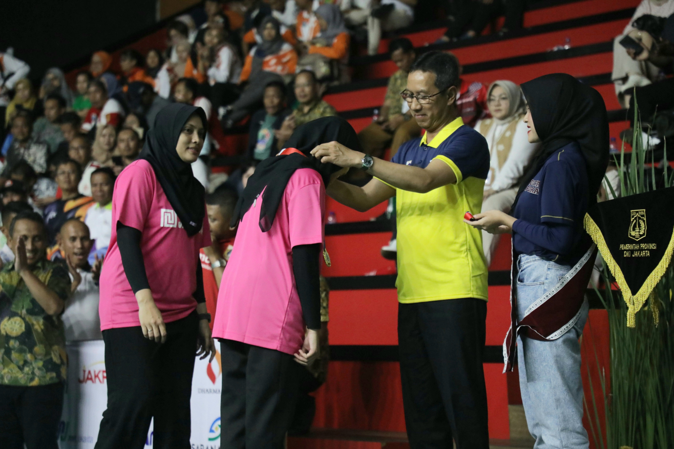 Penjabat (Pj) Gubernur DKI Jakarta, Heru Budi Hartono secara resmi menutup dan memberikan hadiah dan mengalungkan medali kepada pemenang kejuaraan bulutangkis Piala Pj Gubernur 2024 di Gelanggang Remaja Jakarta Timur, Kelurahan Bidara Cina, Kecamatan Jatinegara, Jakarta Timur, Kamis (22/8). Pemenang kategori perorangan ganda putri yakni, Juara 1, PT Pembangunan Jaya, Juara 2, Dinas Pendidikan, Juara 3, Wali Kota Administrasi Jakarta Timur dan Dinas Kesehatan, kategori perorangan ganda putra yakni, juara 1, PT Pembangunan Jaya, juara 2, Perumda Pasar Jaya, Juara 3, Dinas Pemuda dan Olahraga dan Dinas Pendidikan dan kategori beregu yakni Juara 1, Dinas Pemuda dan Olahraga, Juara 2, PT Bank DKI dan Juara 3, Dinas Pendidikan dan Wali Kota Administrasi Jakarta Barat.