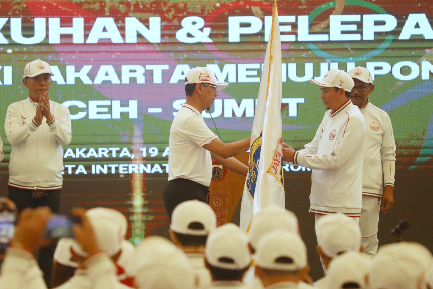 Penjabat (Pj) Gubernur DKI Jakarta, Heru Budi Hartono melepas keberangkatan 1.046 atlet DKI Jakarta di Jakarta International Velodrome, Jakarta Timur, Senin (19/8). Kontingen DKI Jakarta akan mengikuti perhelatan Pekan Olahraga Nasional (PON) yang berlangsung pada 9-20 September 2024 di Aceh dan Sumatera Utara. #kabarpon2024