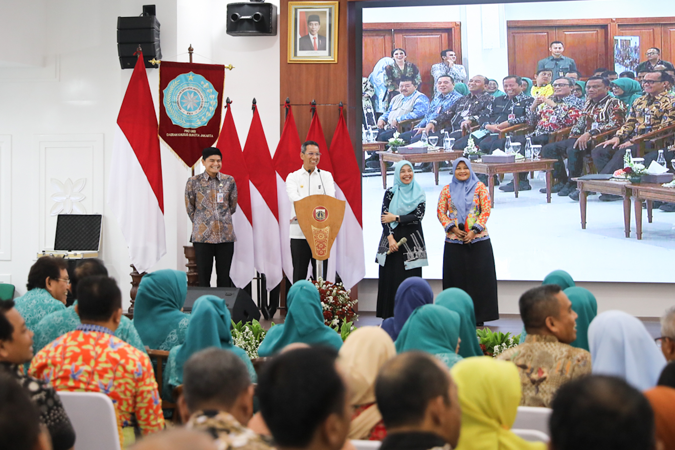 Penjabat (Pj) Gubernur DKI Jakarta, Heru Budi Hartono memberikan arahan pada acara Peningkatan Kapasitas Keterpaduan Kelompok Tani (Poktan) RPTRA di Aula Gedung PKK Melati Jaya, Pasar Minggu, Jakarta Selatan, Kamis (15/8). Poktan di RPTRA yang tersebar di seluruh wilayah Jakarta akan dijadikan laboratorium terpadu Tim Penggerak Pemberdayaan Kesejahteraan Keluarga (TP PKK) tingkat Provinsi DKI Jakarta.
