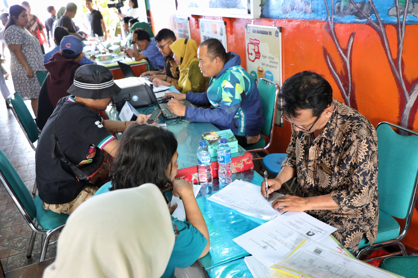 Dinas Pendidikan Provinsi DKI Jakarta gelar layanan penerbitan Surat Keterangan Pengganti Ijazah (SKPI) yang dilakukan di tempat pengungsian SDN Manggarai 05, Manggarai, Tebet, Jakarta Selatan, Kamis (15/8). Dibukanya layanan ini bertujuan untuk mendata jumlah peserta didik yang terdampak dari bencana kebakaran dan mendata dokumen terkait pendidikan yang musnah hilang karena kebakaran seperti rapor dan ijazah.